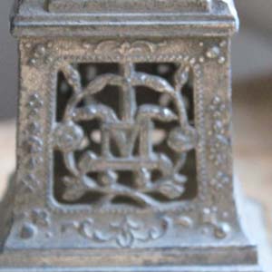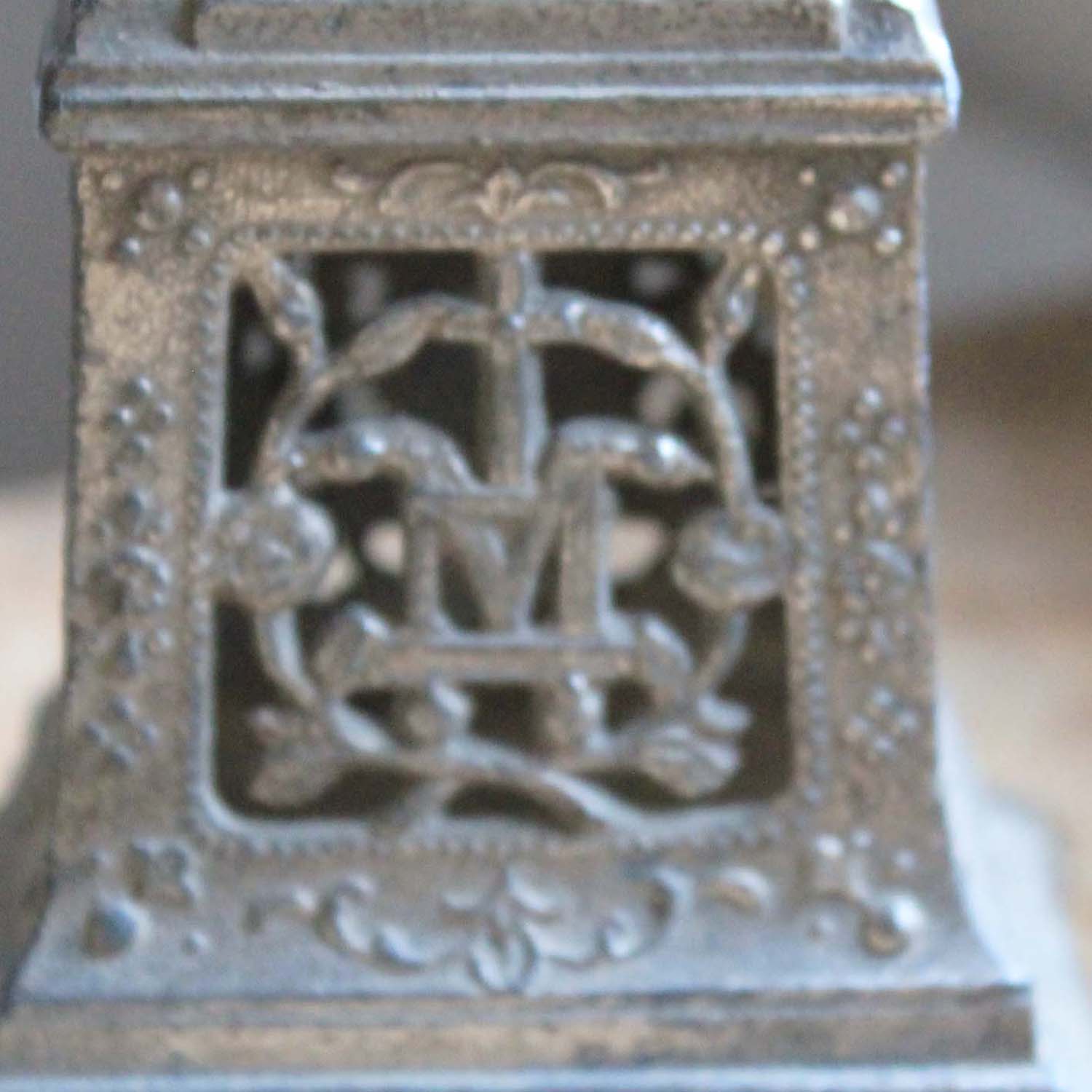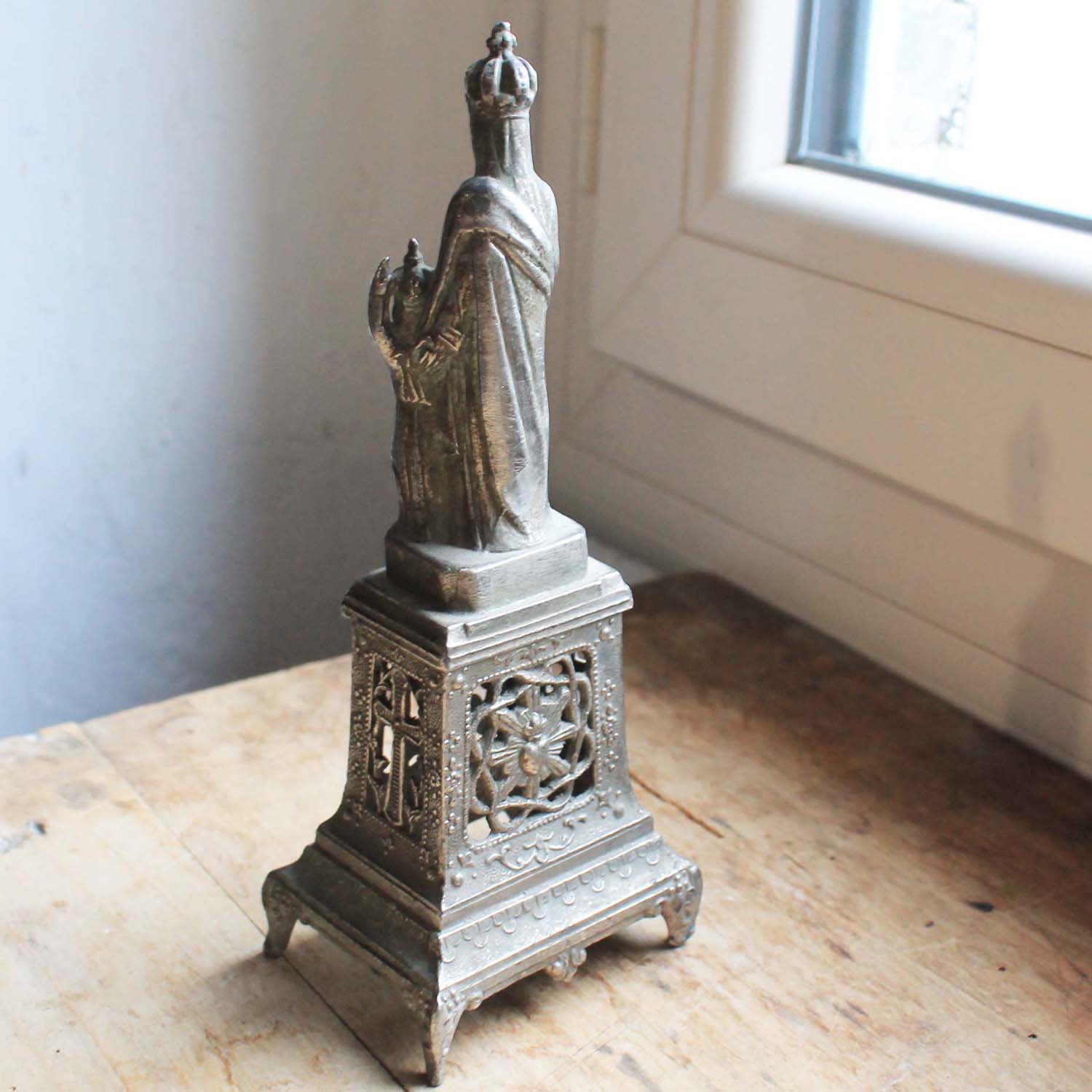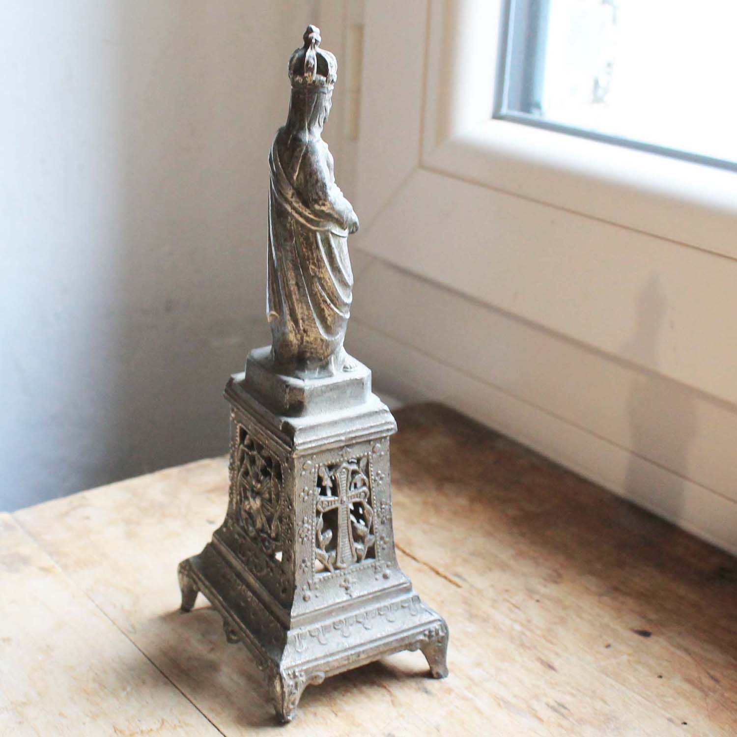 古い金属製のマリア様&キリスト様像。古いものなので多少の傷、汚れがあります。