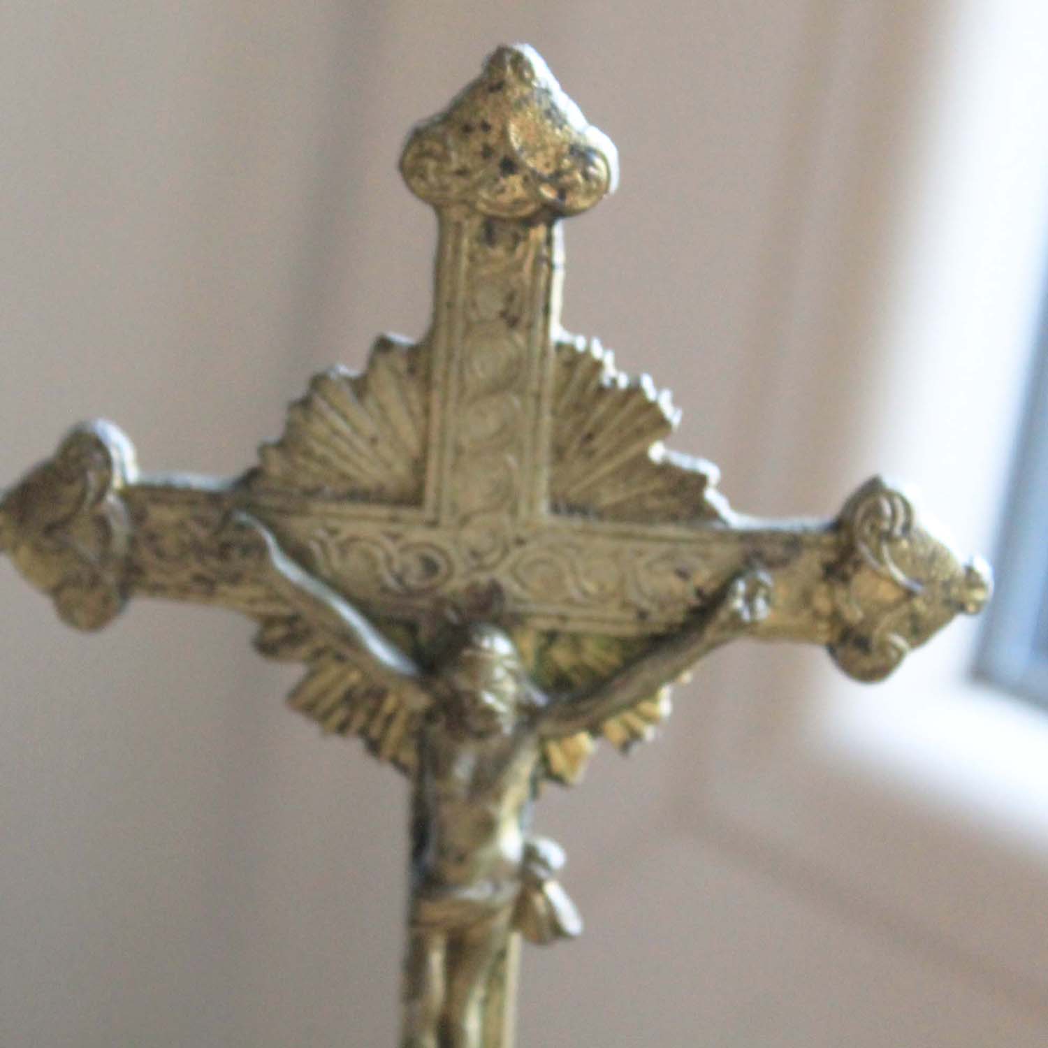 100年近く前の古い十字架。十字架部分は真鍮製だと思います。古いものなので多少の傷、汚れがあります。