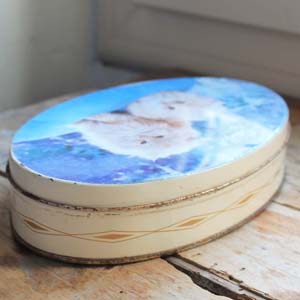 古いTin缶。お菓子の缶です。猫の写真がかわいいです。古いものなので他生の傷、汚れがあります。