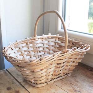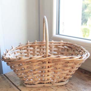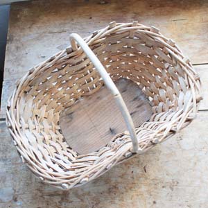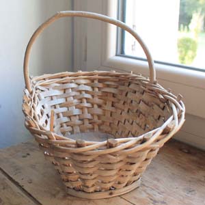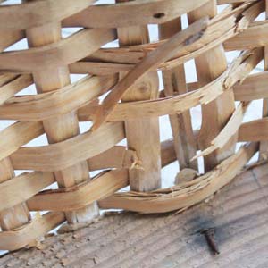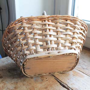 古いバスケット。古いものなので藤の折れ、汚れがあります(持ち手にも折れがあります)