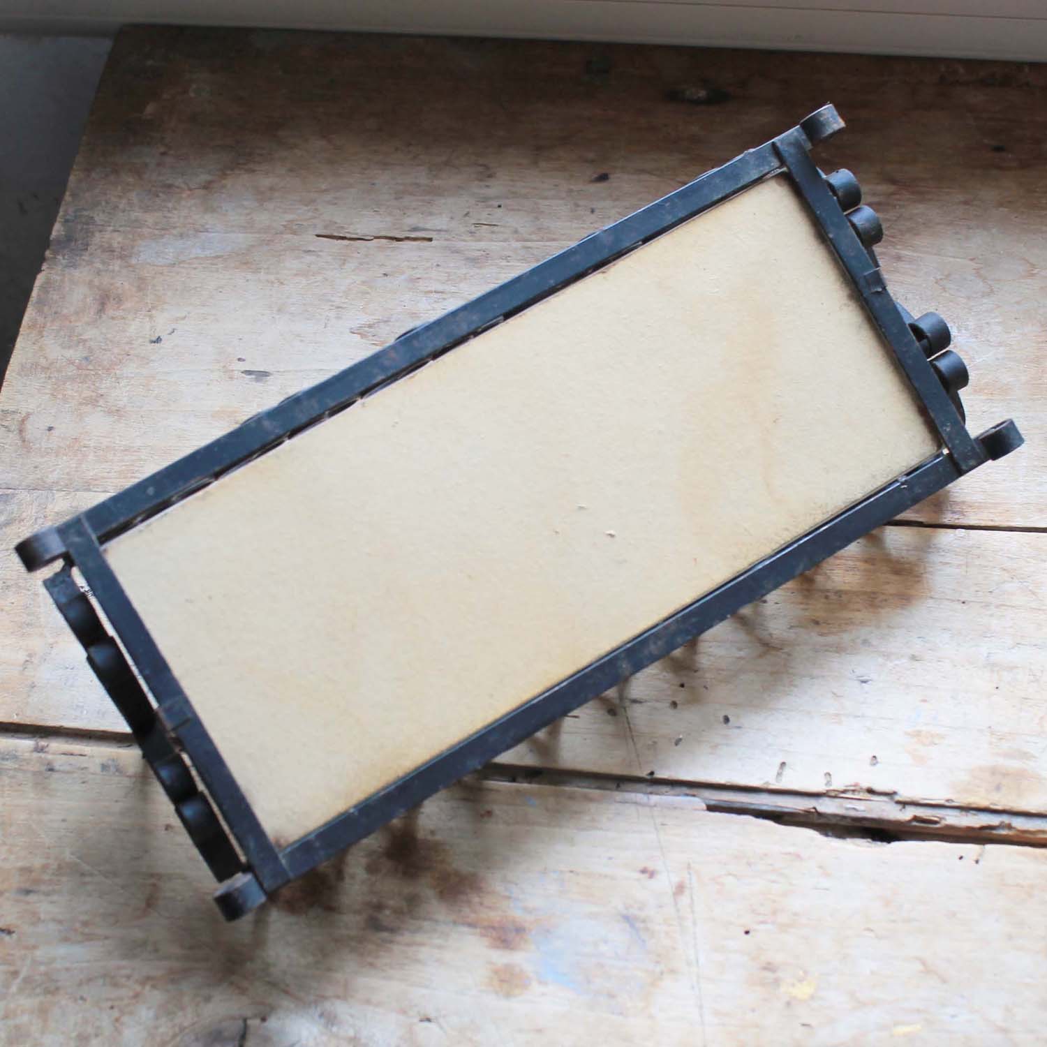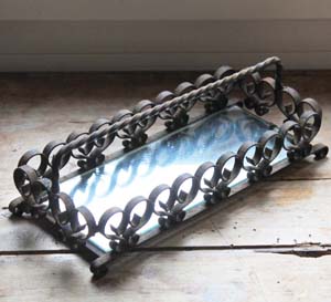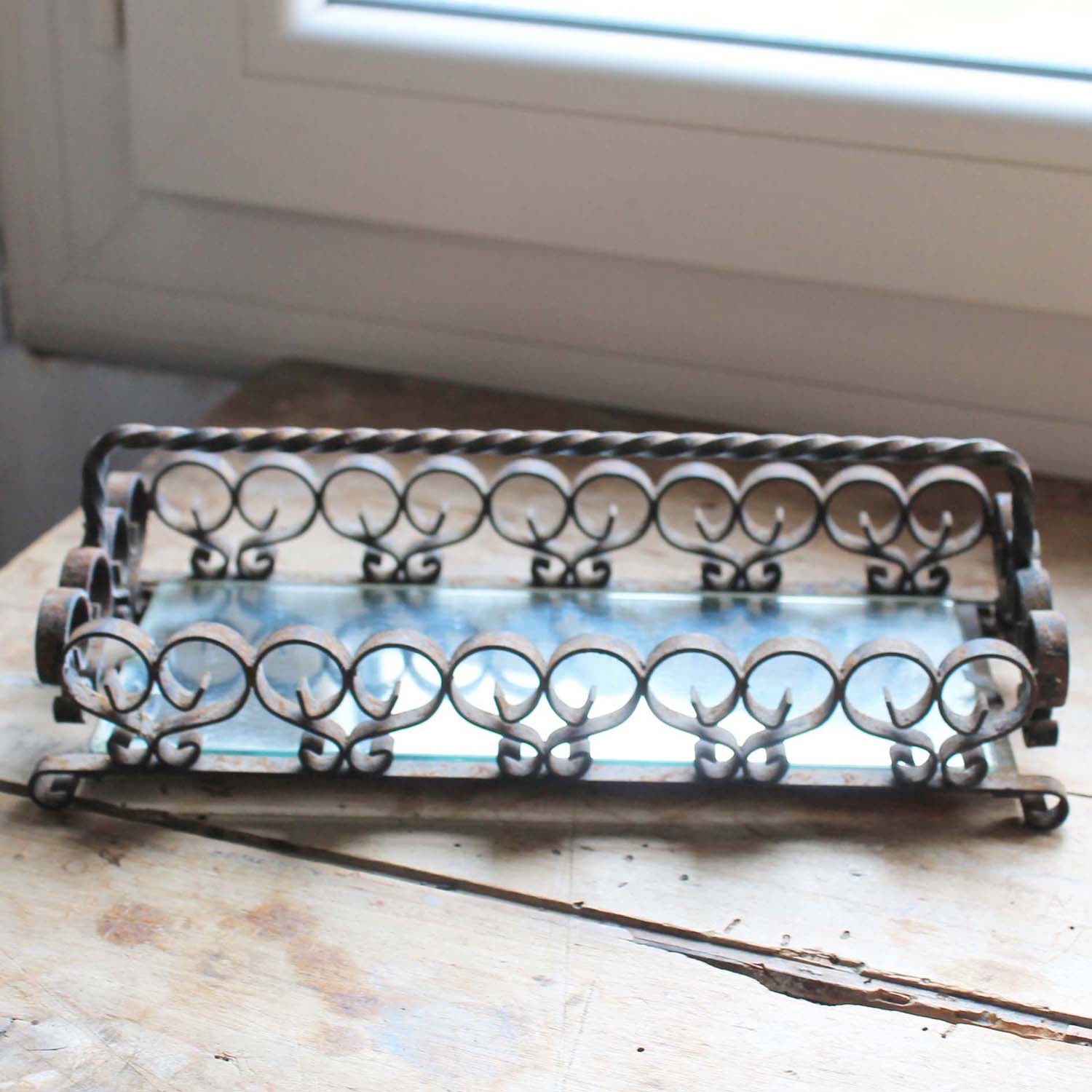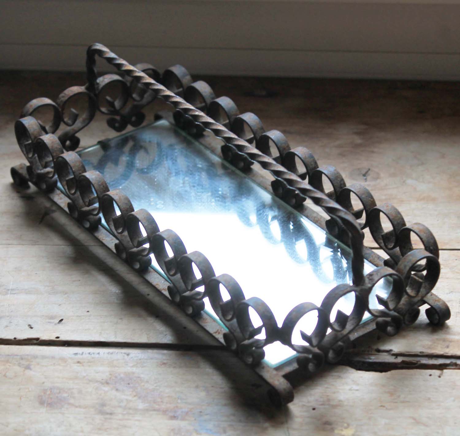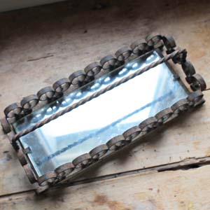 古い鏡付きのトレイ。枠は鉄製です。古いものなので多少の傷、さび等があります。