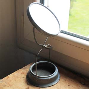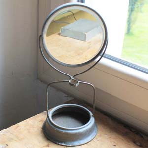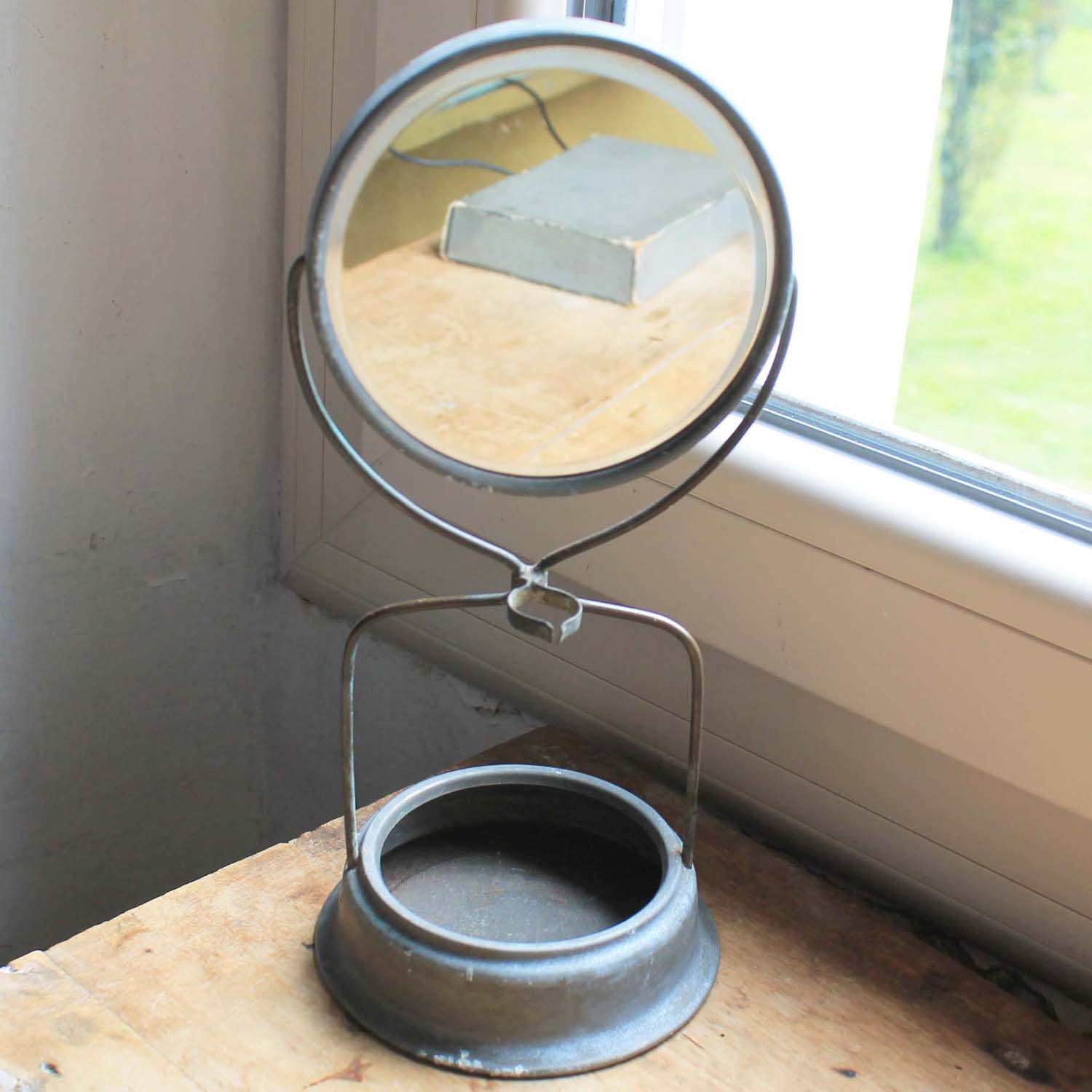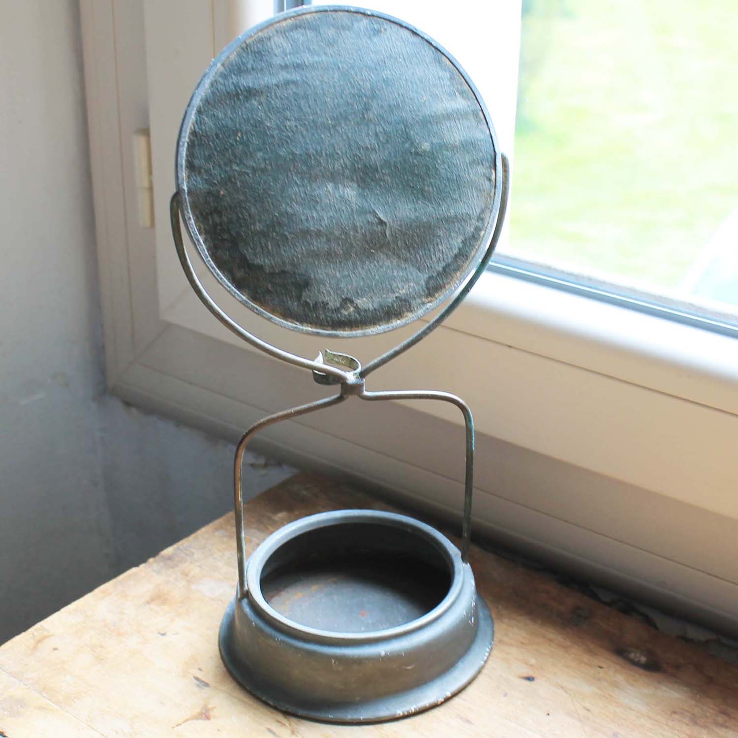髭剃りに使われたと思われるミラースタンド。 古いものなので多少の傷、汚れがあります。