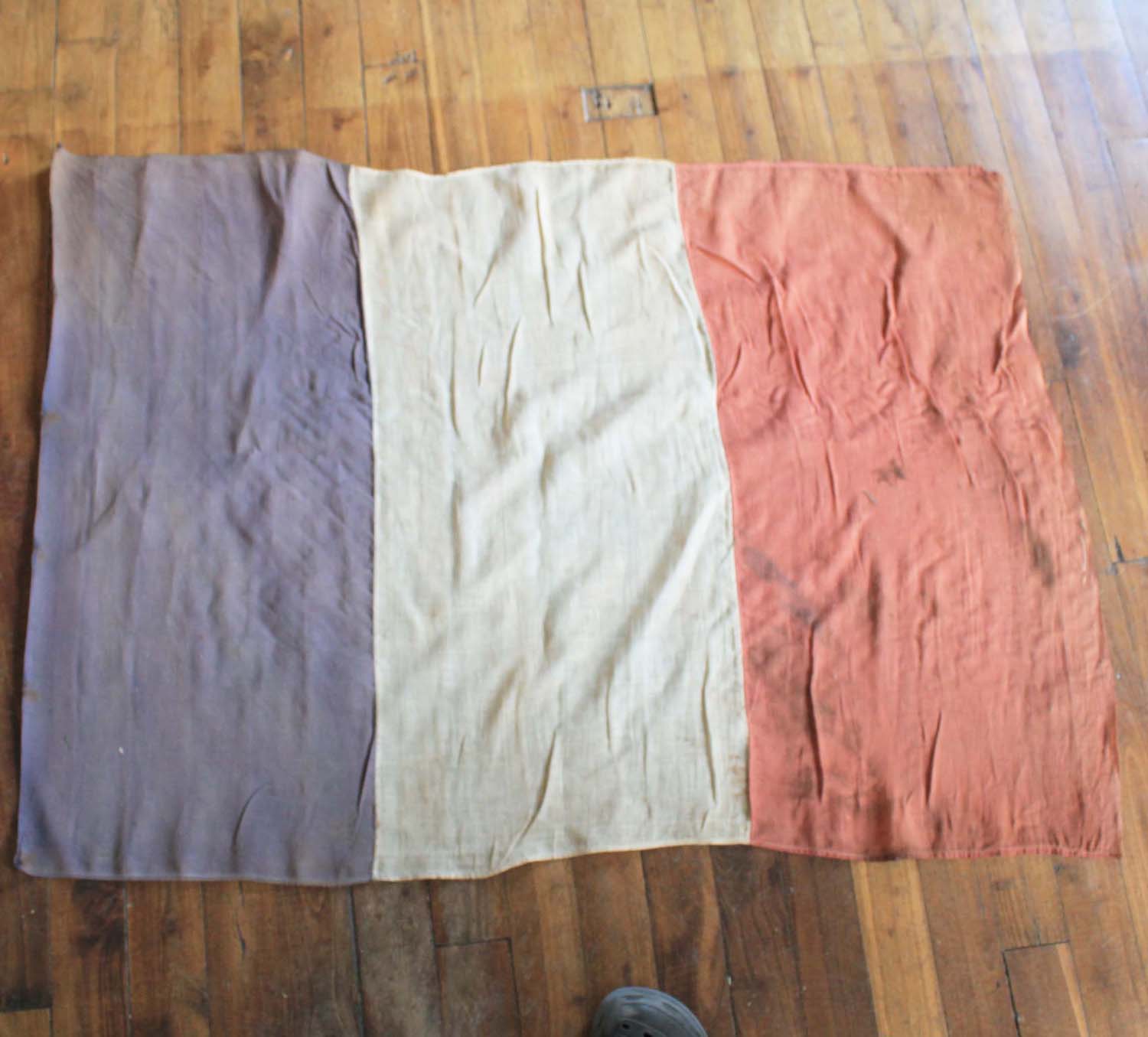 第2次世界大戦あたりで使われていたフランス国旗。古いものなので傷、汚れ、切れがあります。