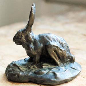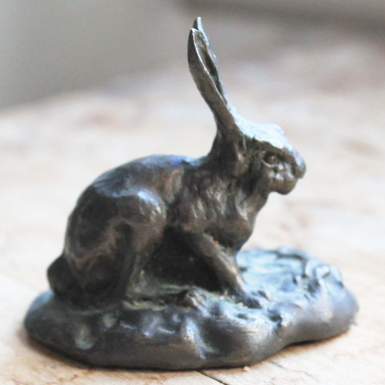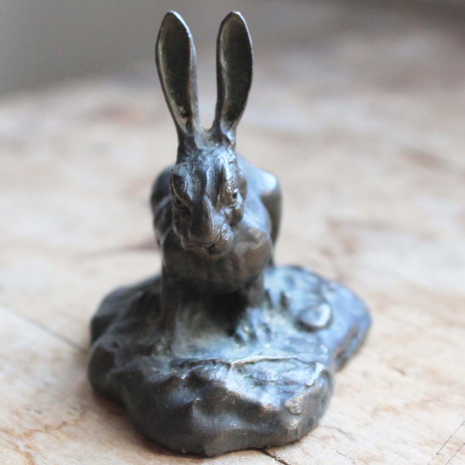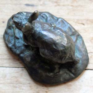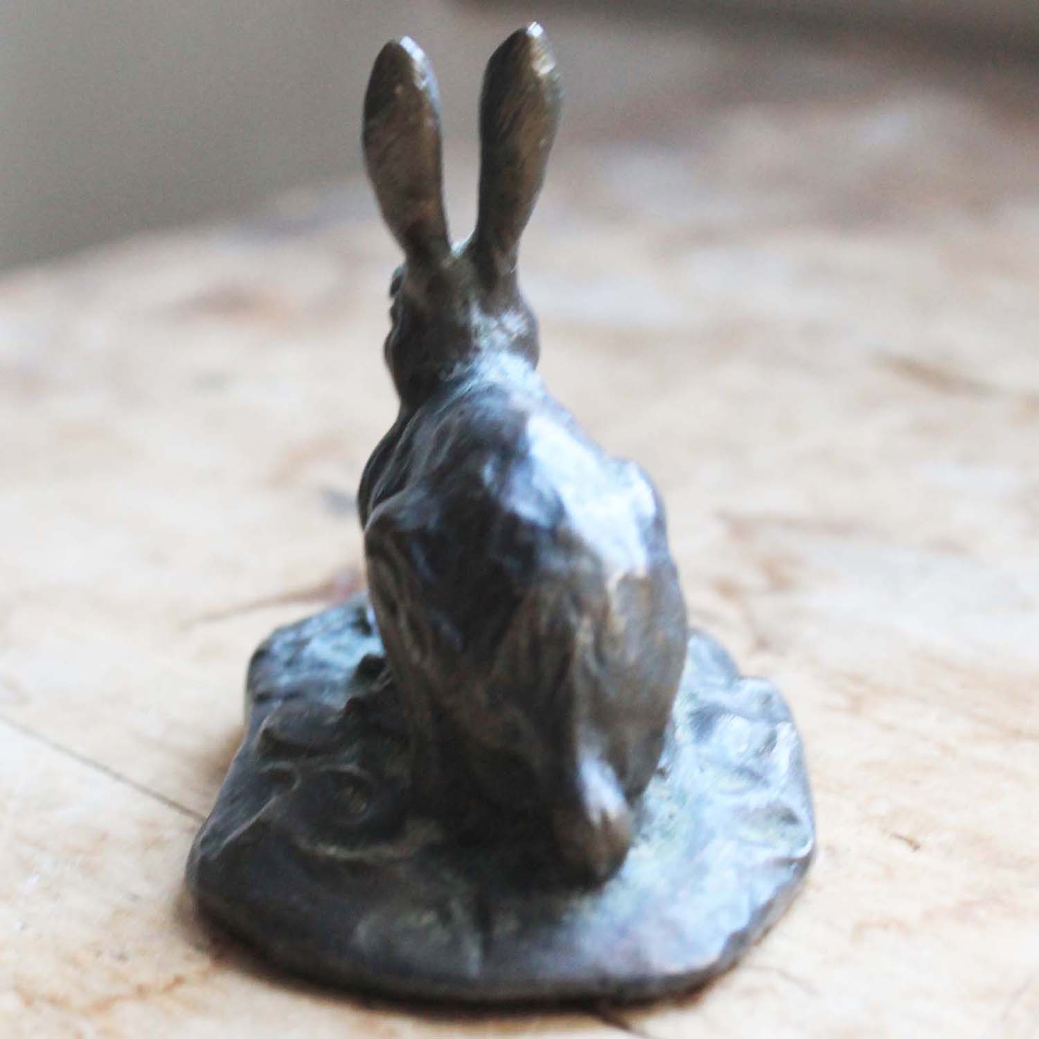 古いブロンズ製の小さなウサギの置物。古いものなので多少の傷、汚れがあります。