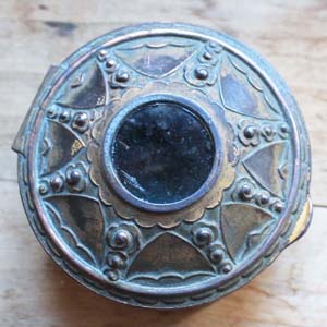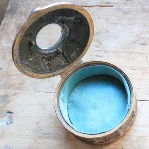 100年貢ぐらい前の古い宝石箱。古いものなので、ガラス部分に修繕があります。