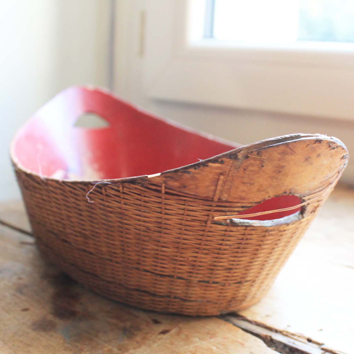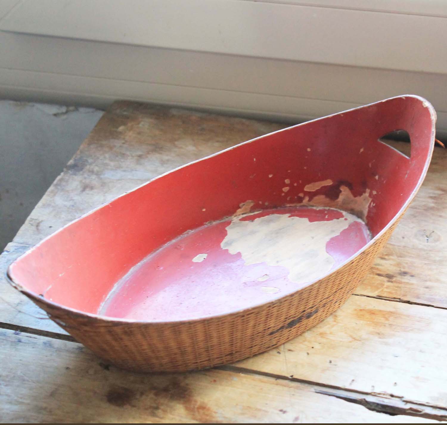 【商品番号】I250276 【商品名】19世紀後期 漆 深トレイ&籐デコレーション