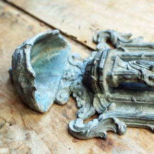 古いピューター製のベネティエ。古いものなので多少の汚れがあります。