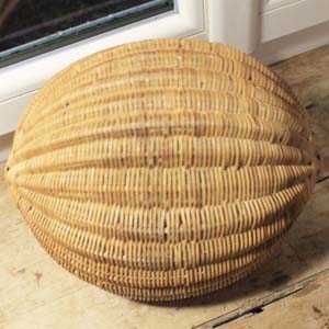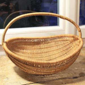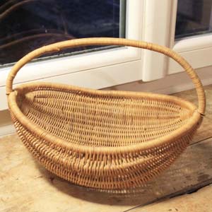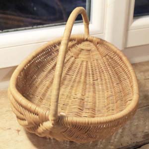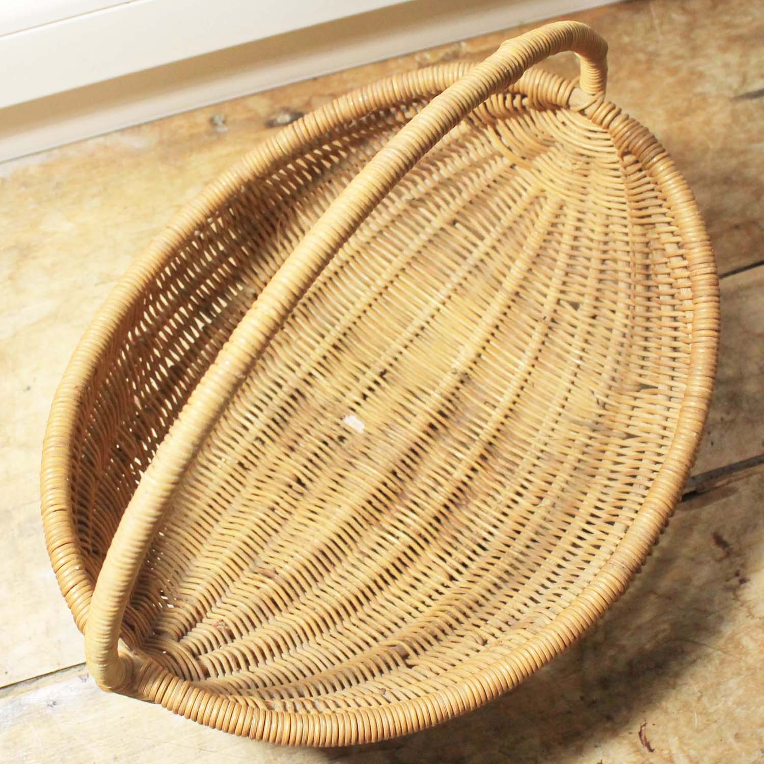 籐製の丸っぽいバスケット。古いものなので多少の傷、汚れ、籐の割れがあります。