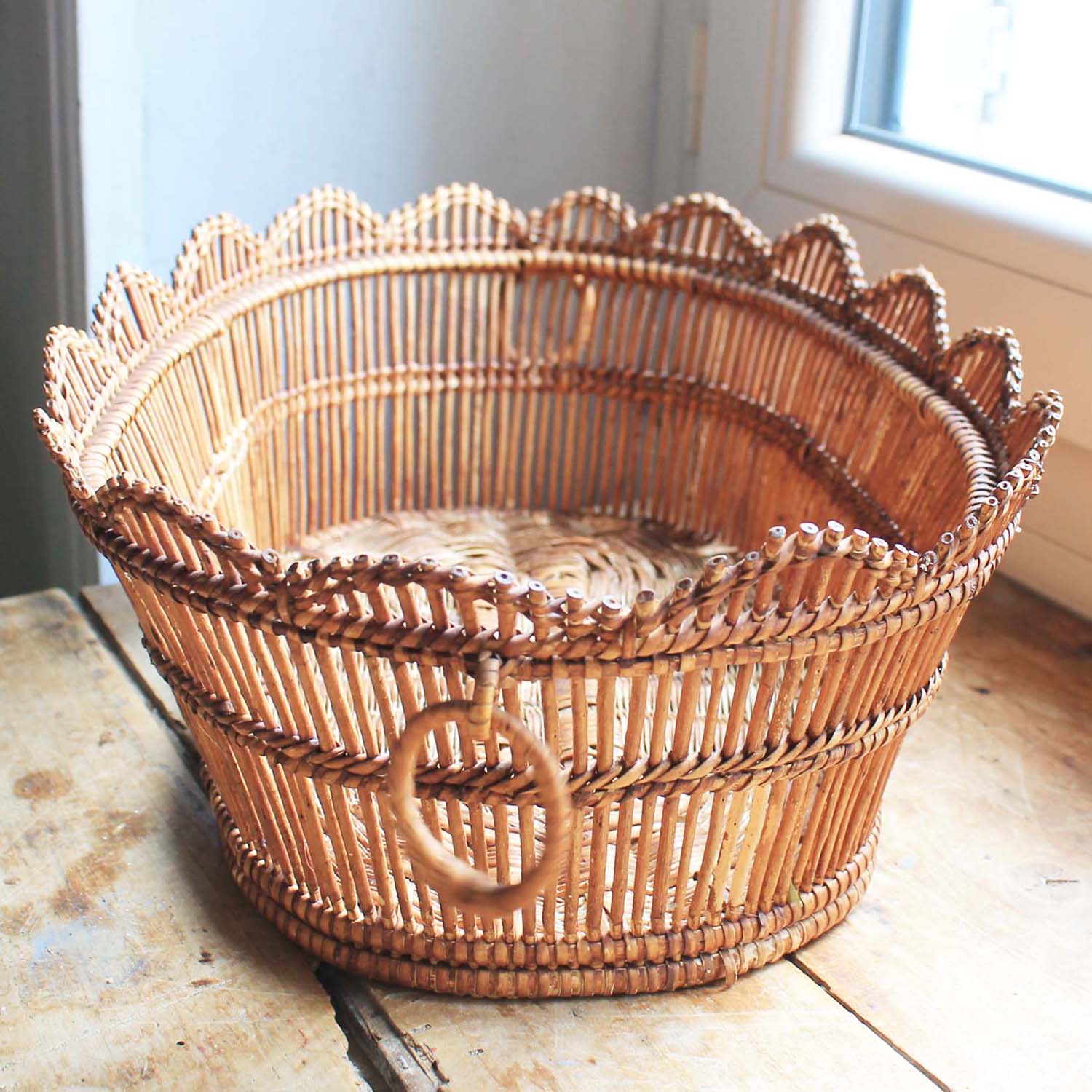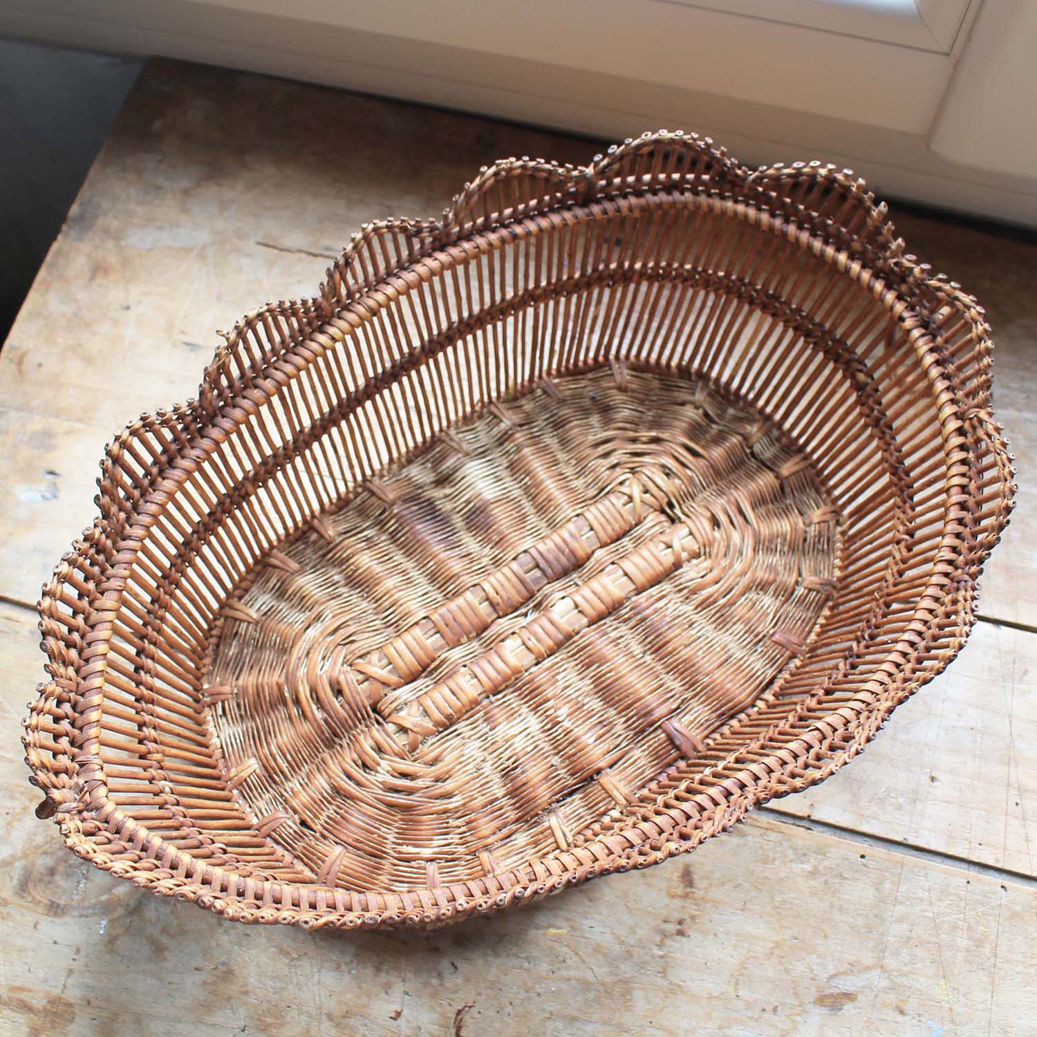 100年ぐらい前の古いテーブル用バスケット。古いものなので多少籐の折れがあります。