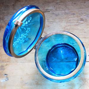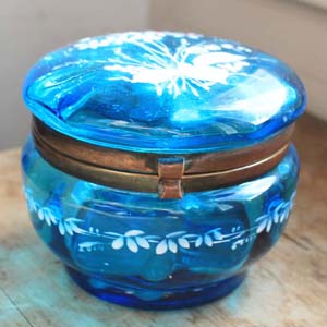 【商品番号】I250298 【商品名】20世紀初期 型吹きグラス製 小物入れ ハンドペイント