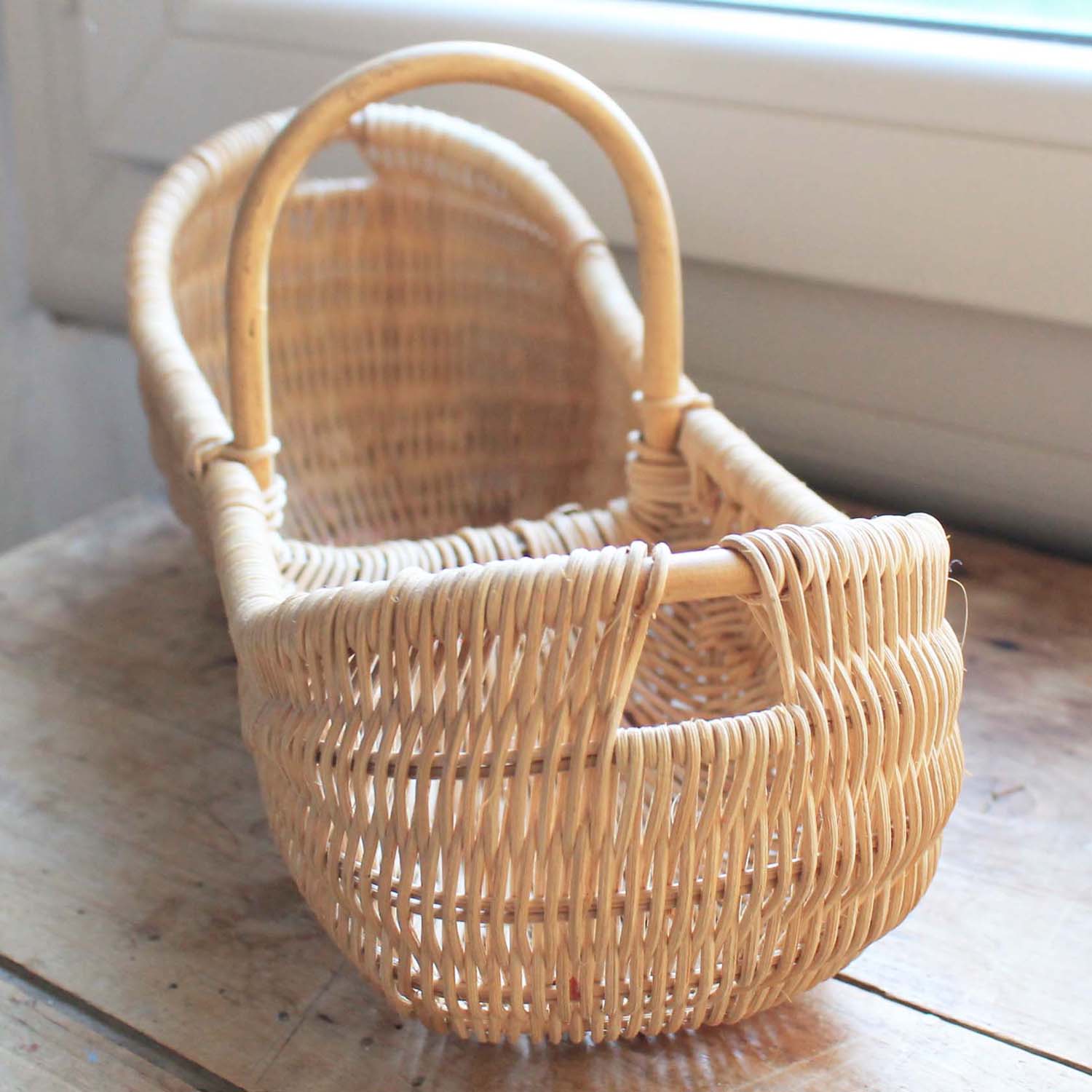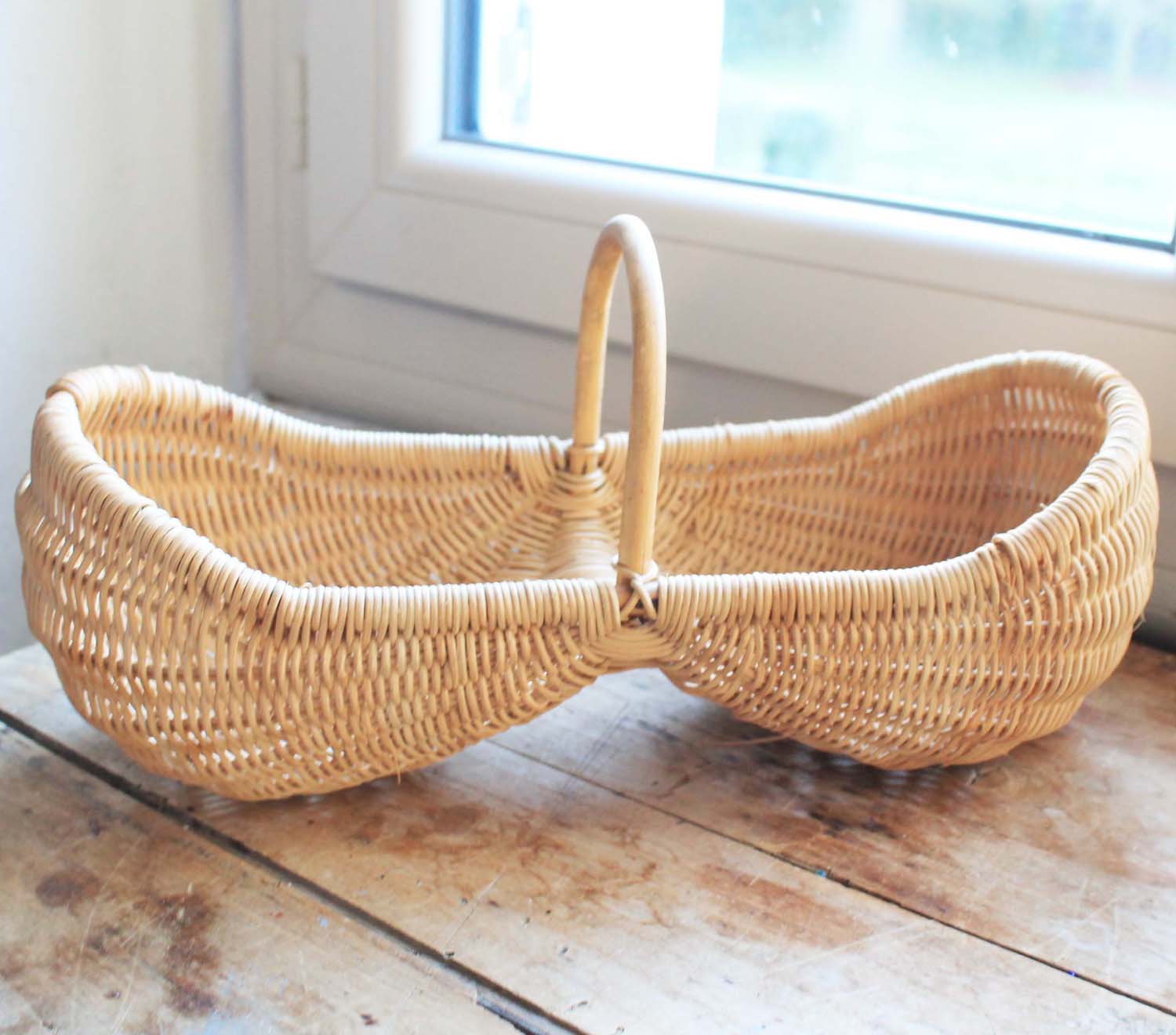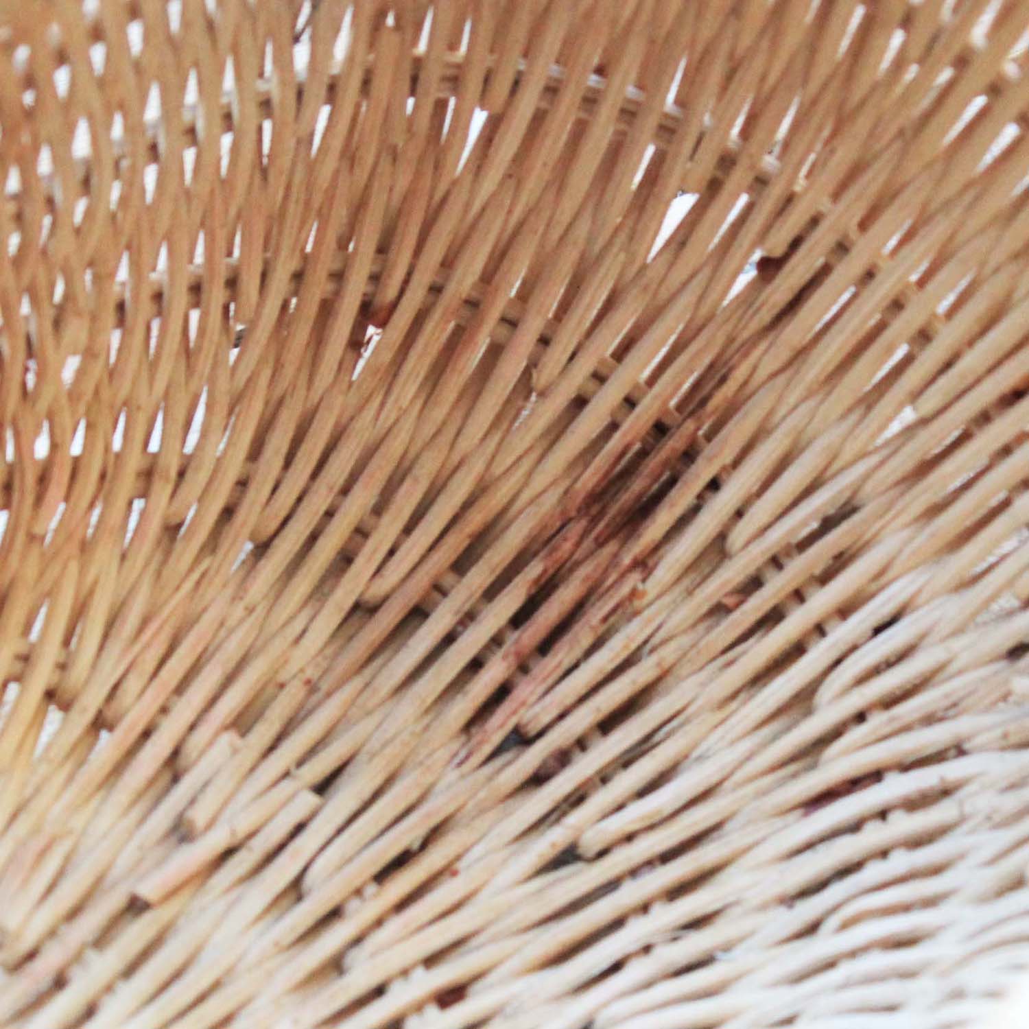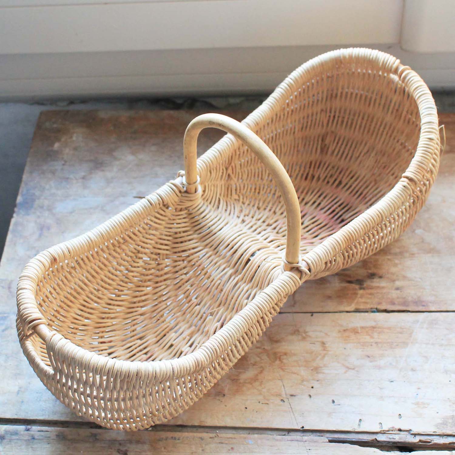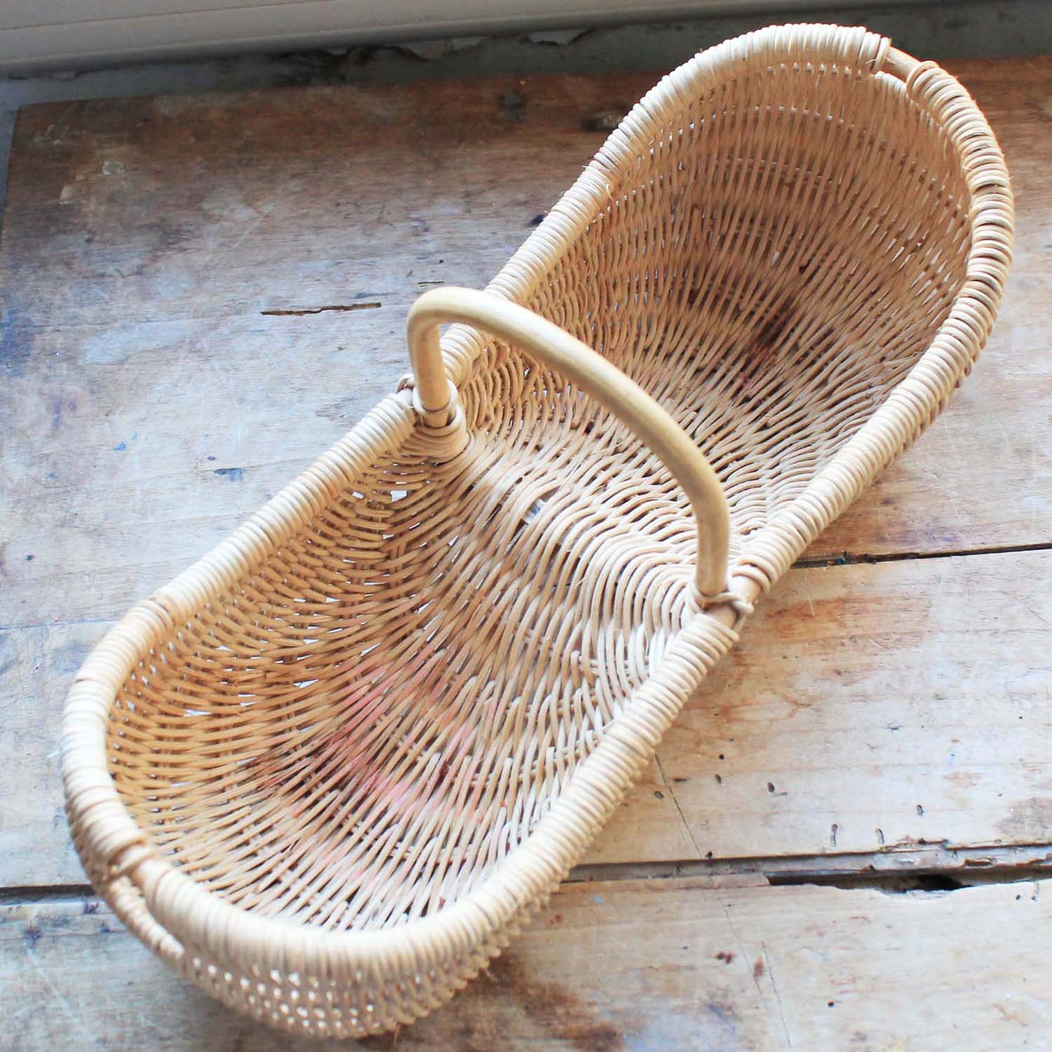 ミッドセンチュリーあたりの古い小さめのバスケット。 古いものなので汚れ、籐の割れがあります。