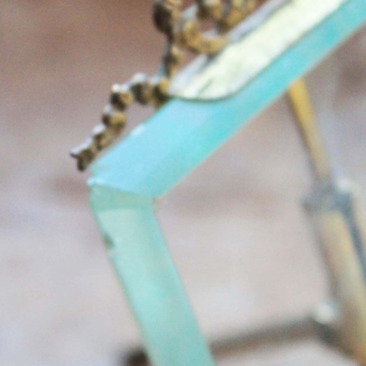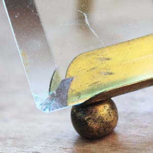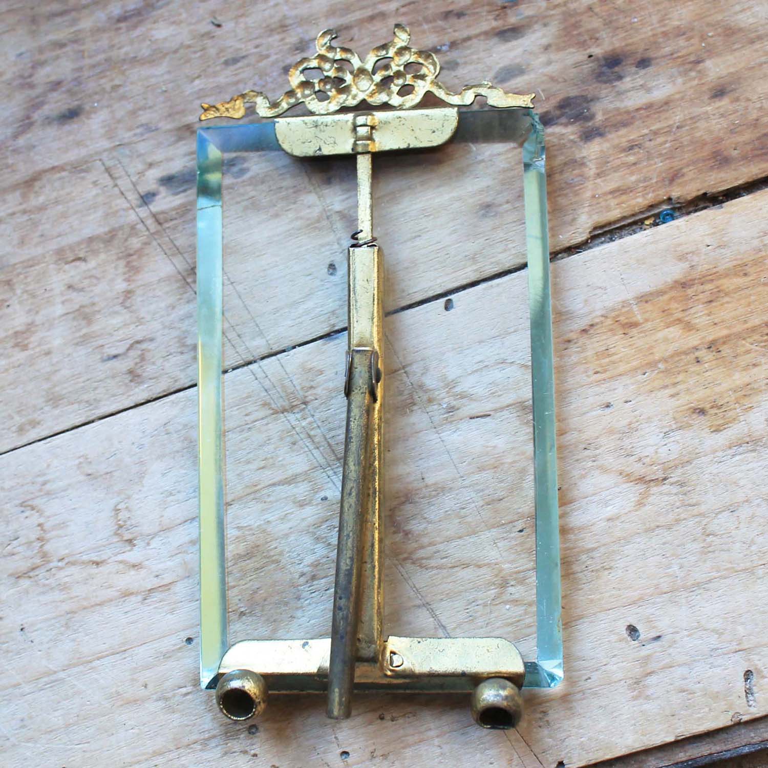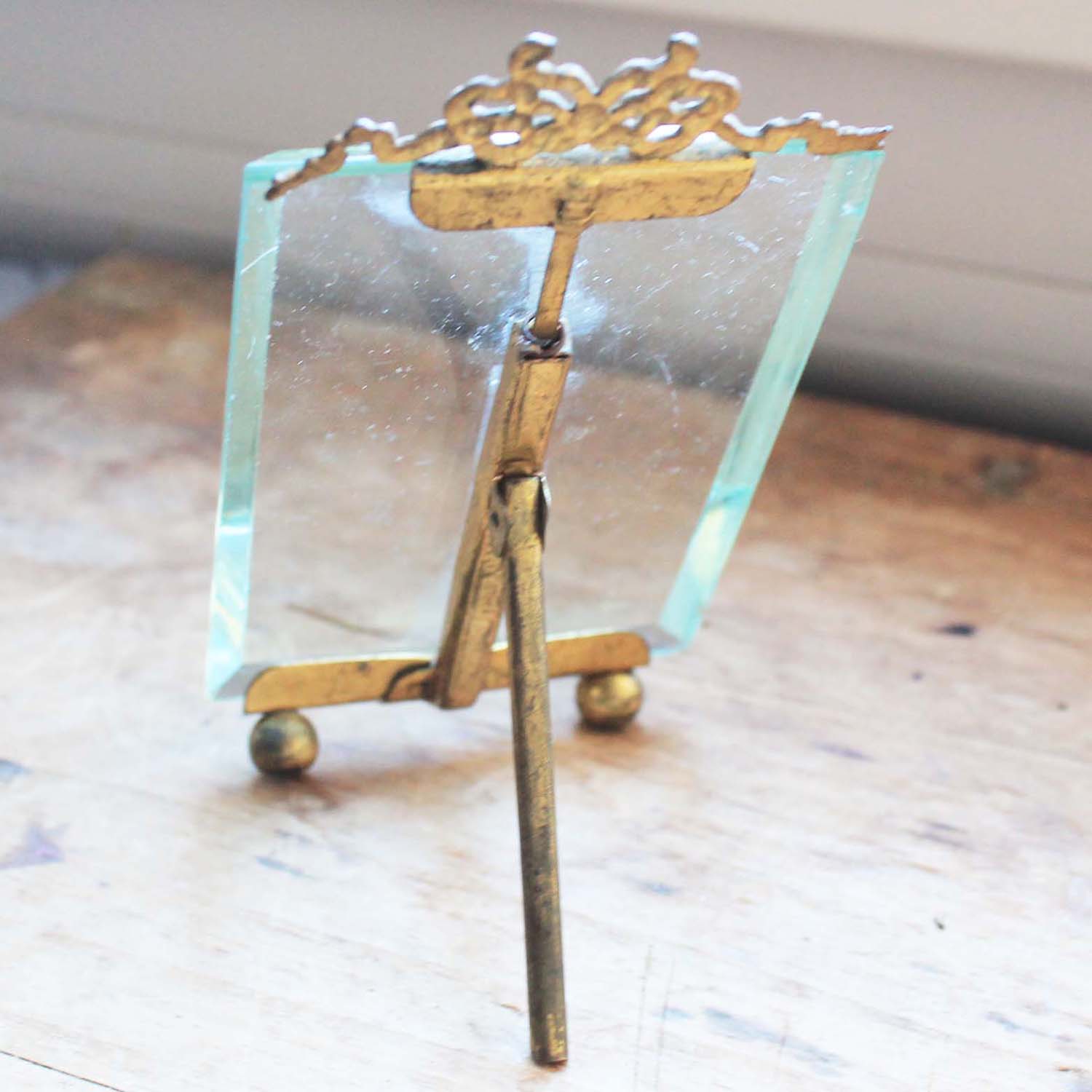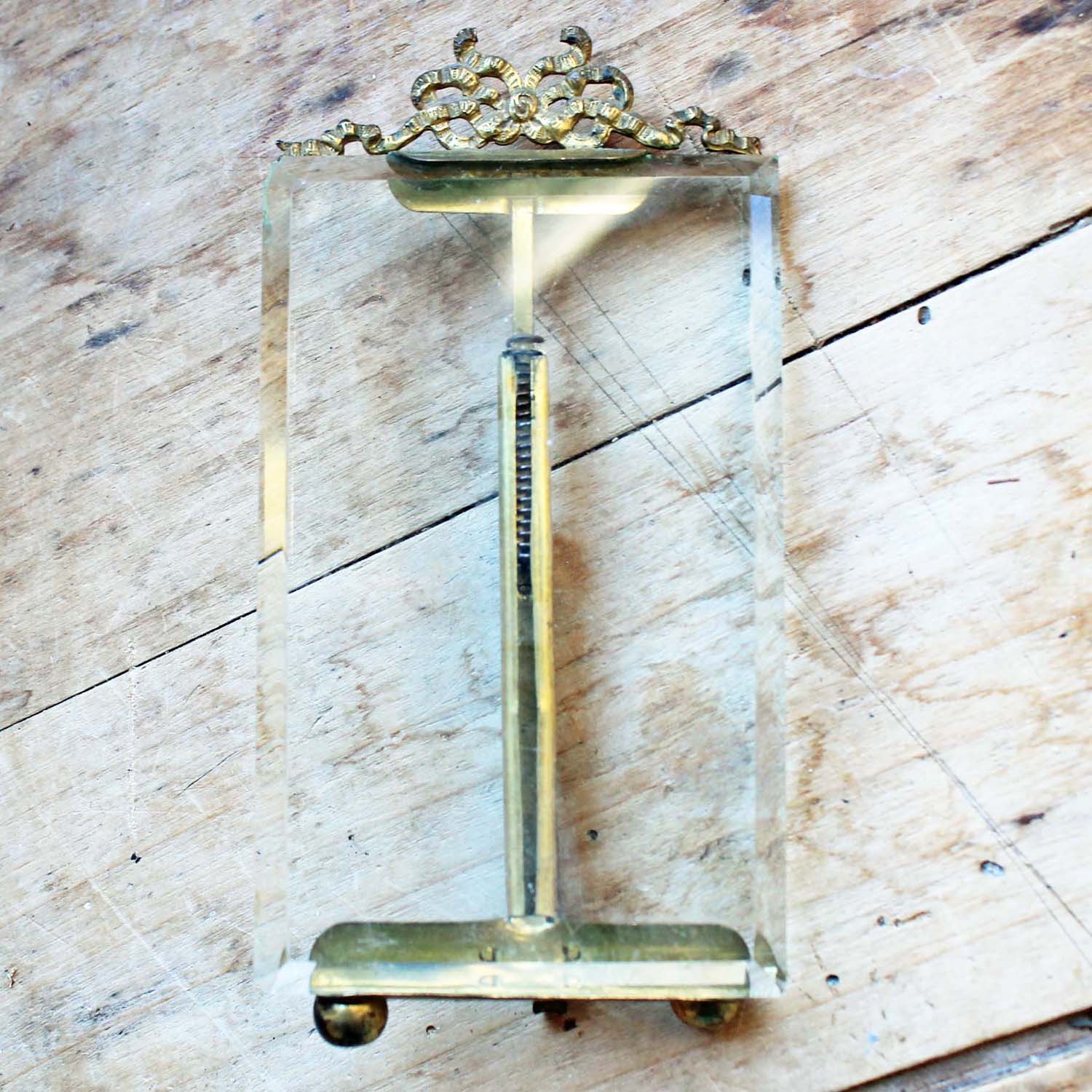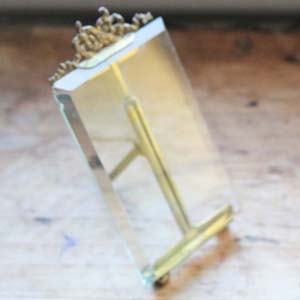 古いガラス製の写真立て。リボンモチーフがかわいいです。古いものなのでガラスの淵に小さな欠け、リボンモチーフに欠けがあります。