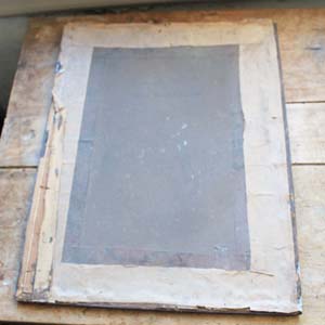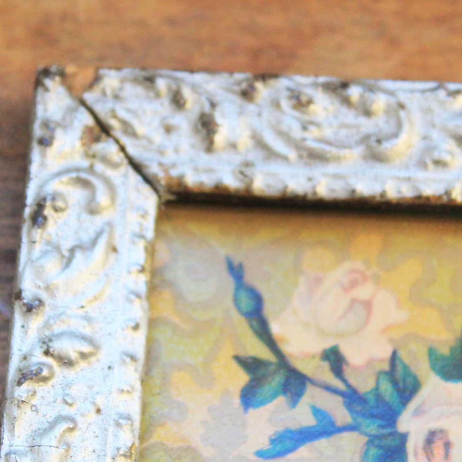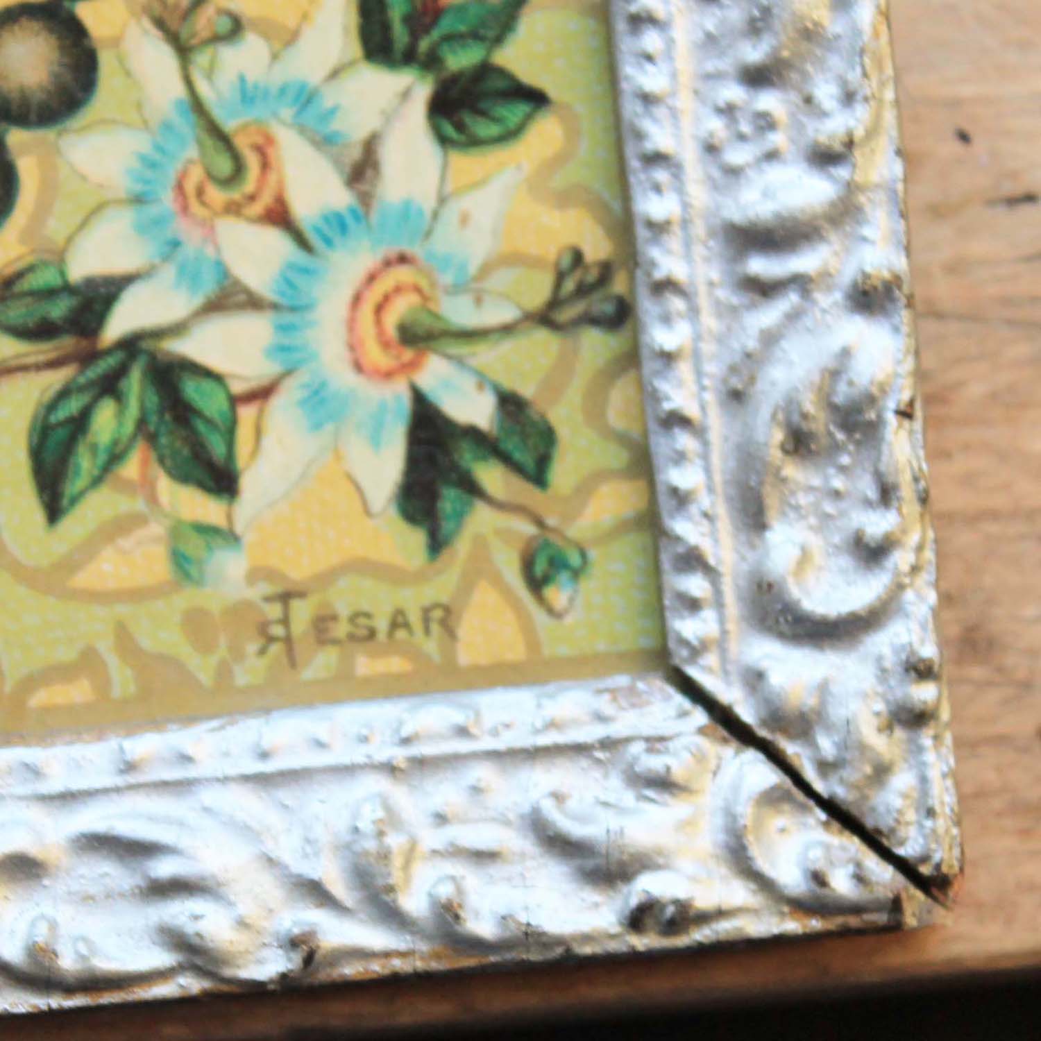 100年ぐらい前の古い木製額&プリント画。銀色はとても珍しいです。 ガラスは入っていません。古いものなので多少額にダメージがあります。