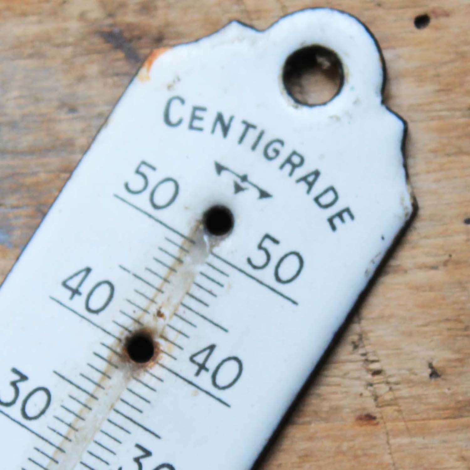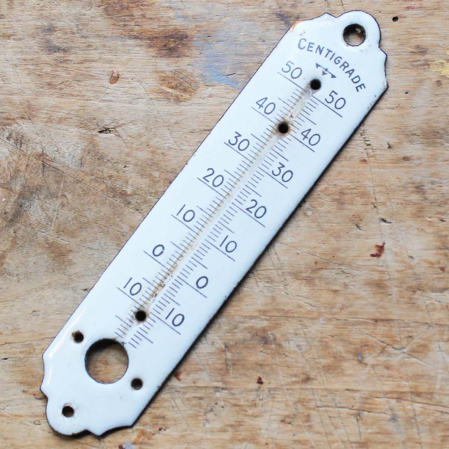 古いホーロー製の温度計の台。温度計はありません。古いものなので傷、汚れがあります。 温度計を別途購入していただき取り付けることも可能です。