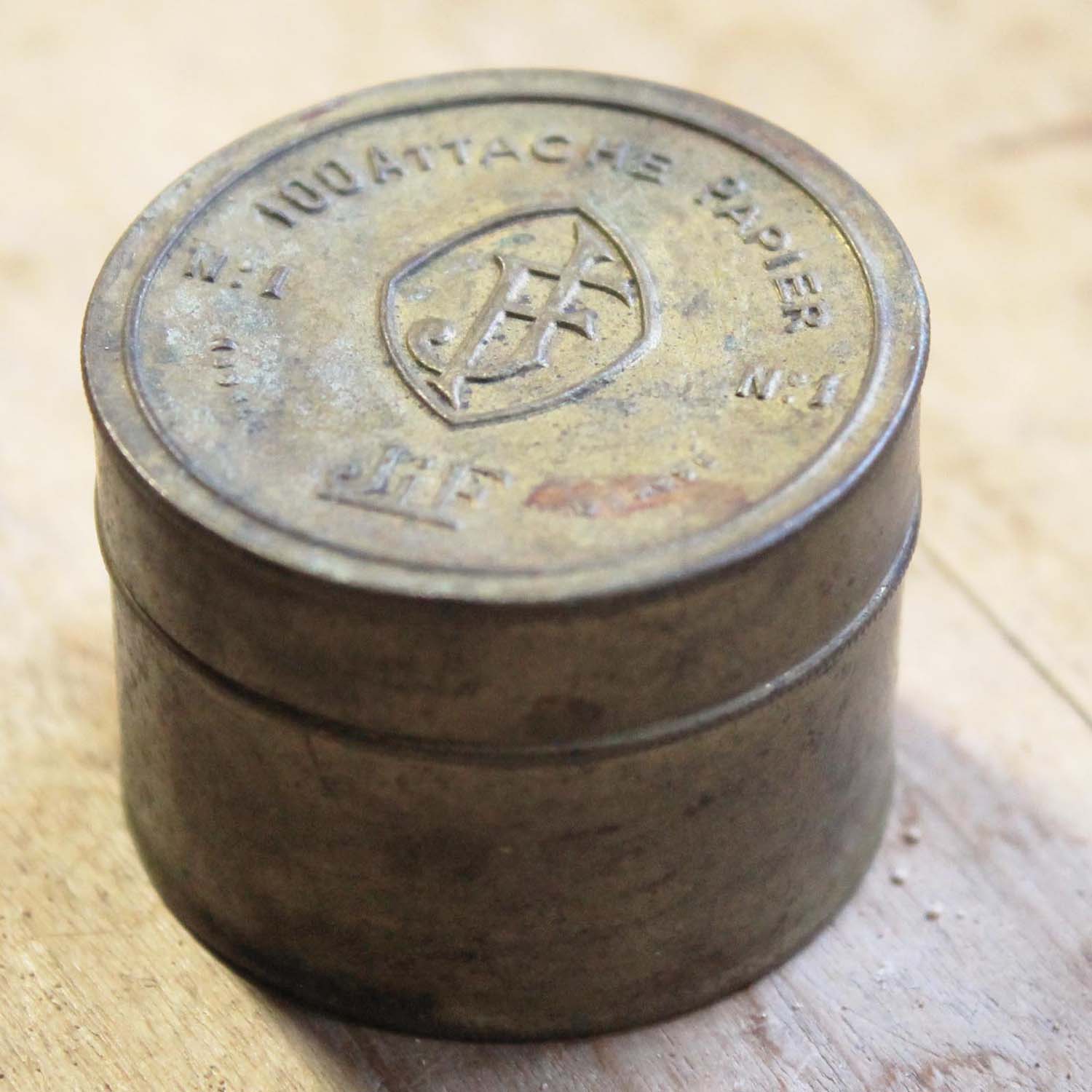 アールデコのデザインがかわいい小さなボックス。古いものなので多少傷、よごれ、金属の緑化があります。