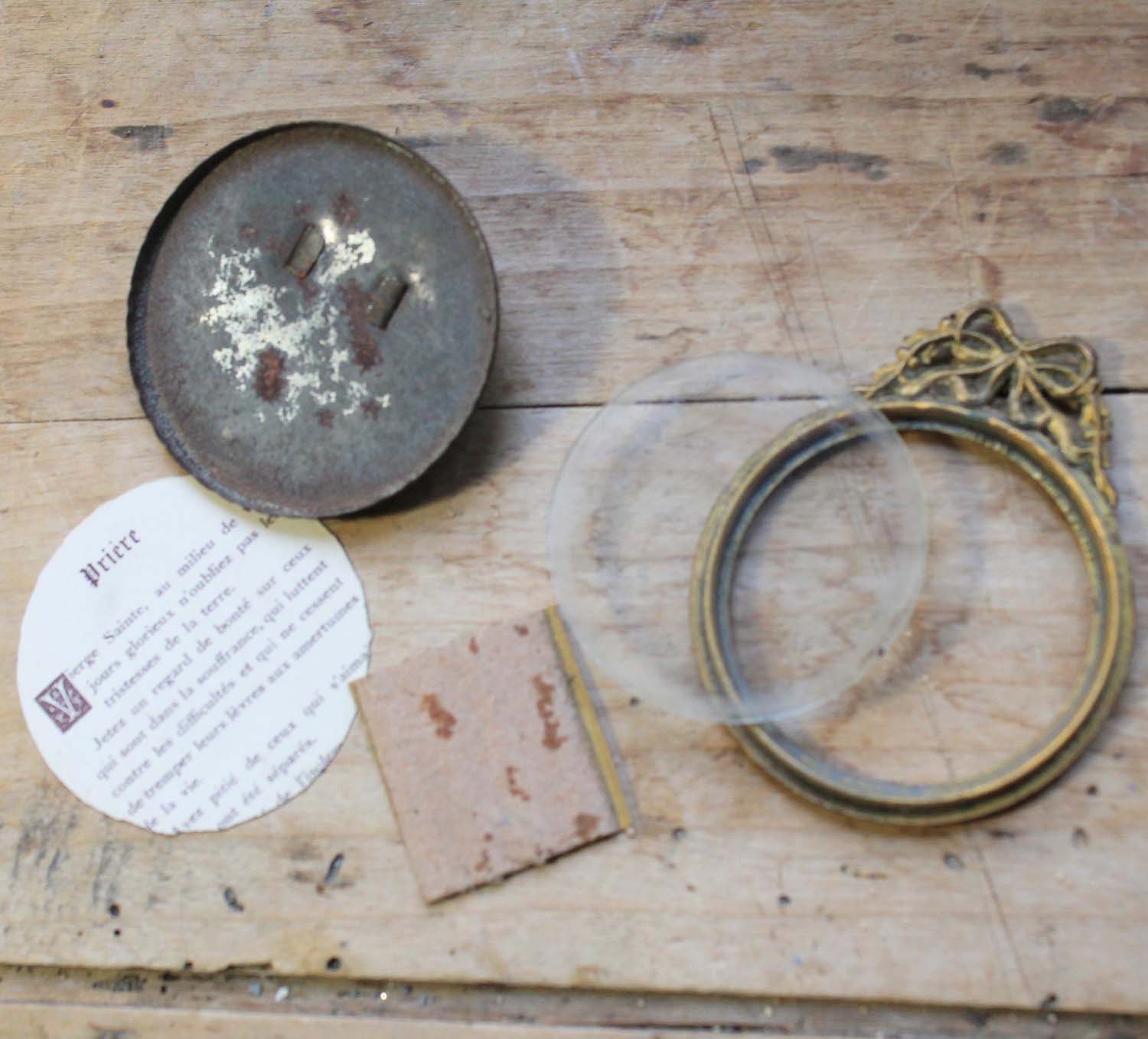 古い小さな額。 リボンモチーフです。古いものなので多少の傷、汚れがあります。