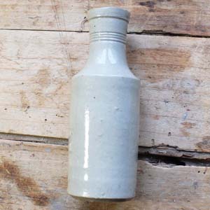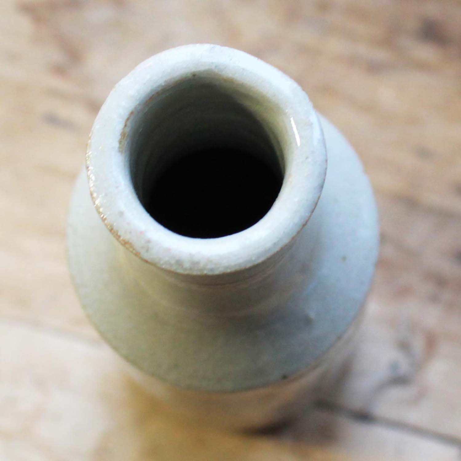 古いグレー陶器のボトル。淵に作られた当時に入った小さな欠けがあります。