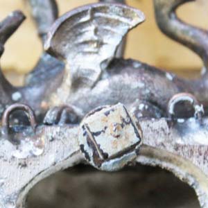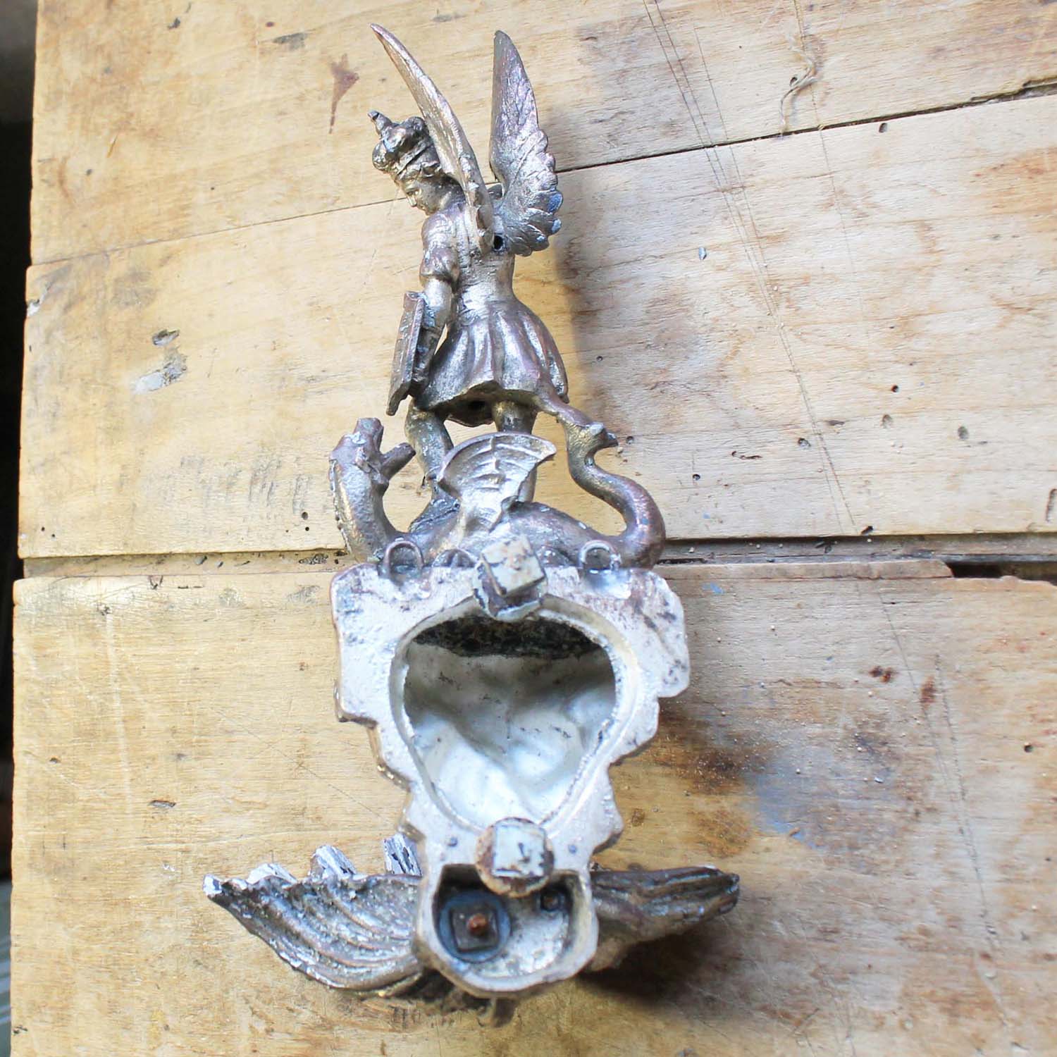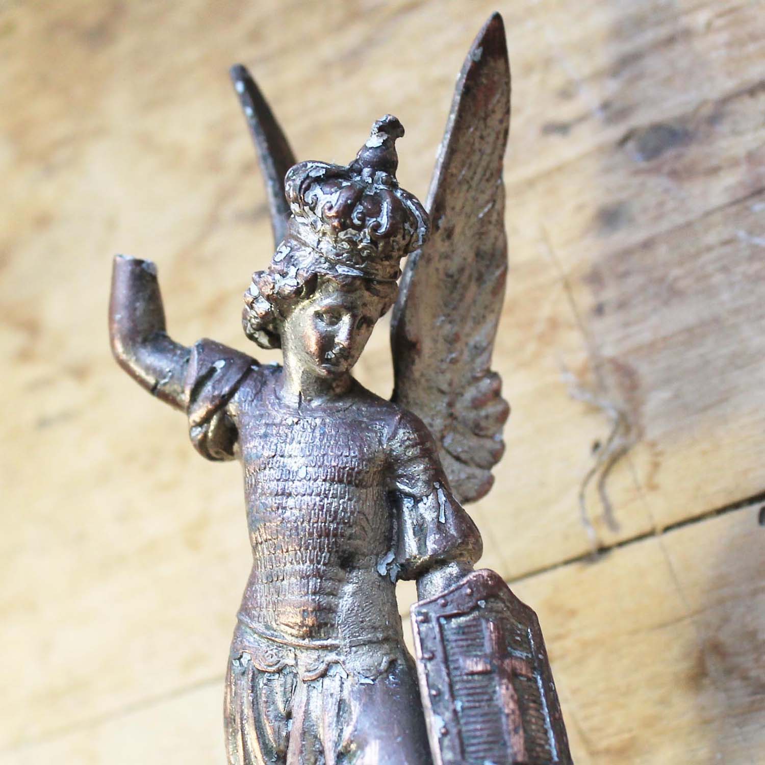 大天使 ミカエルがモチーフの聖水入れ。 腕にダメージがあります。また、ところどころにペイントの後、 シルバープレートの剥がれがあります。 状態を鑑みて格安のお値段を付けました。