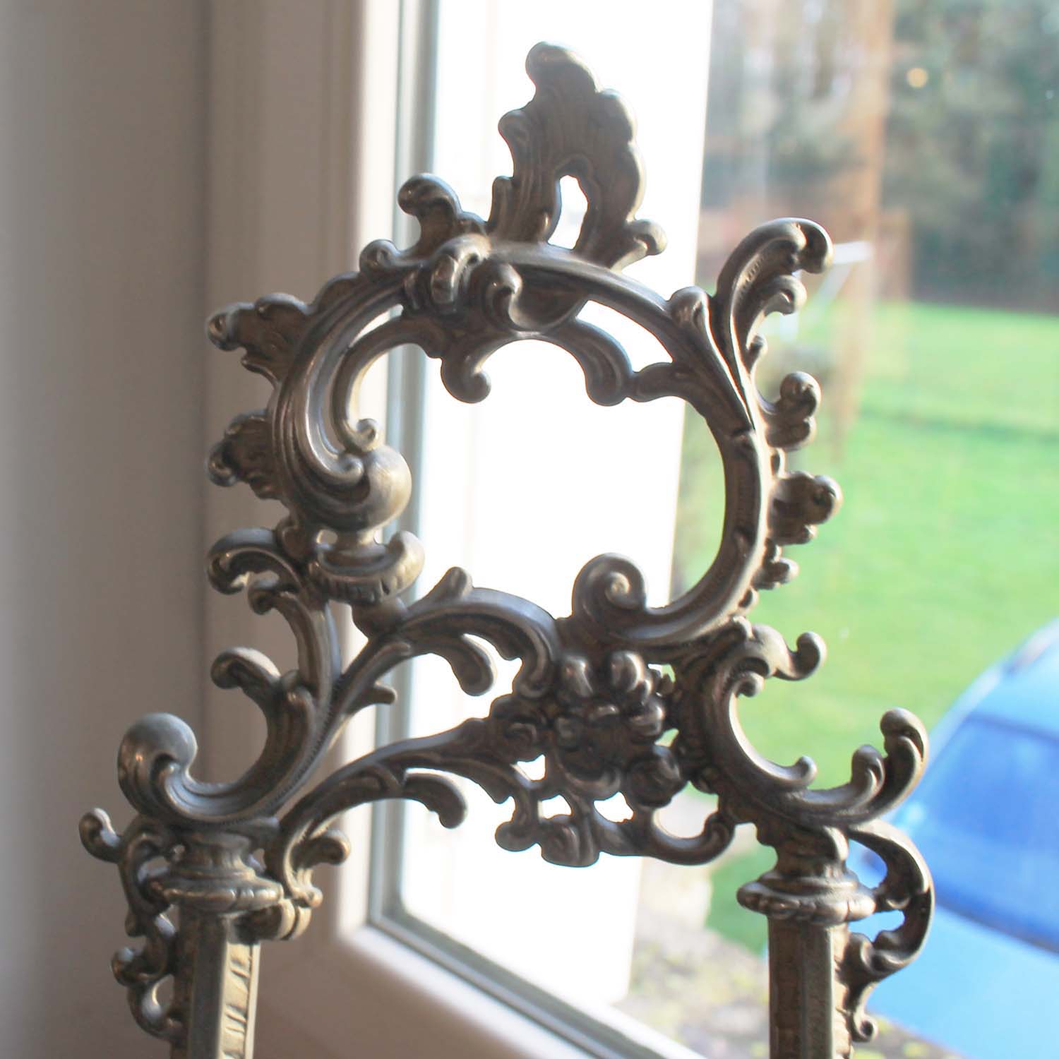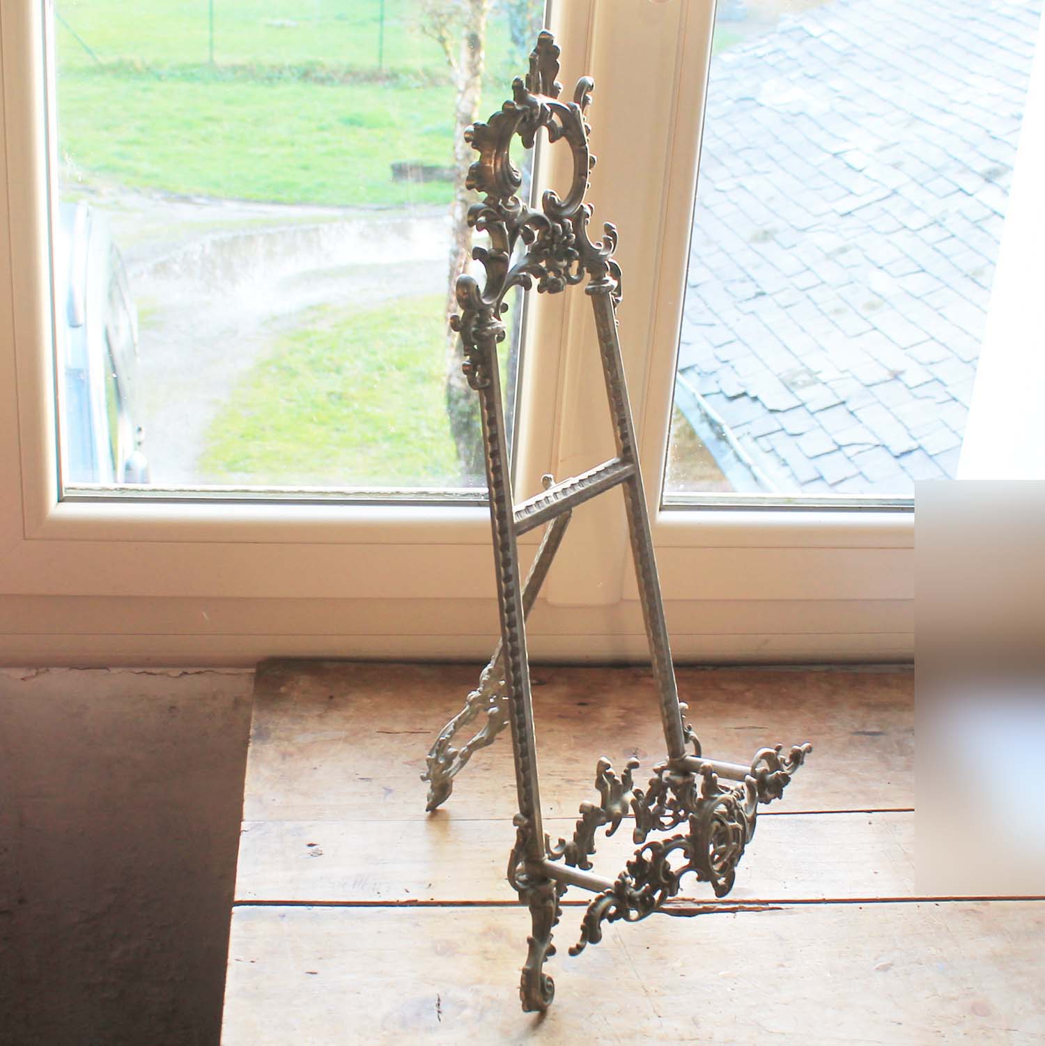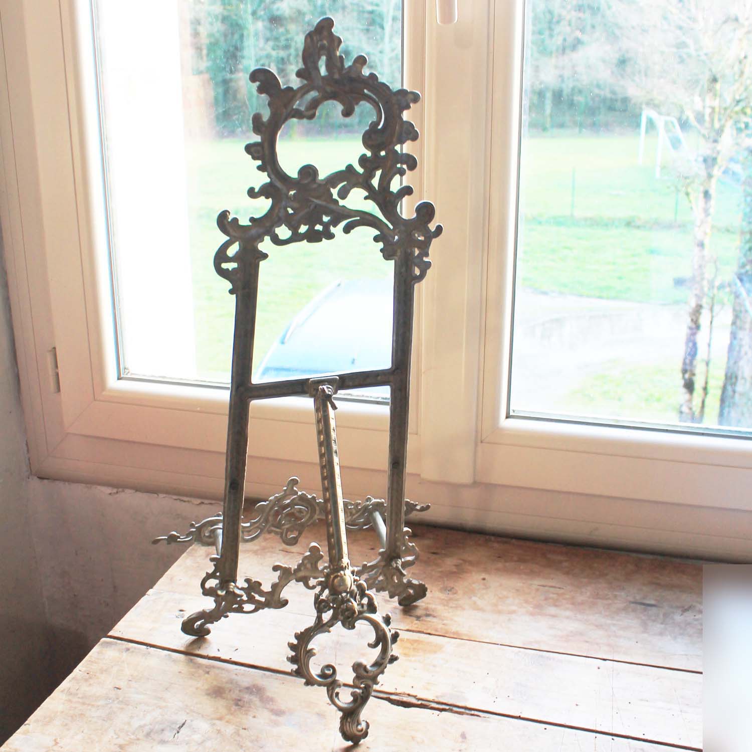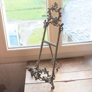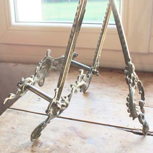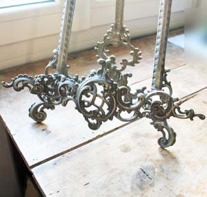 100年ぐらい前の古いピューター製のスタンド。 ロココです。古いものなので多少の傷、汚れがあります。本や絵画を飾るのに良い商品です。組み立て式なので小さくして発送できます。