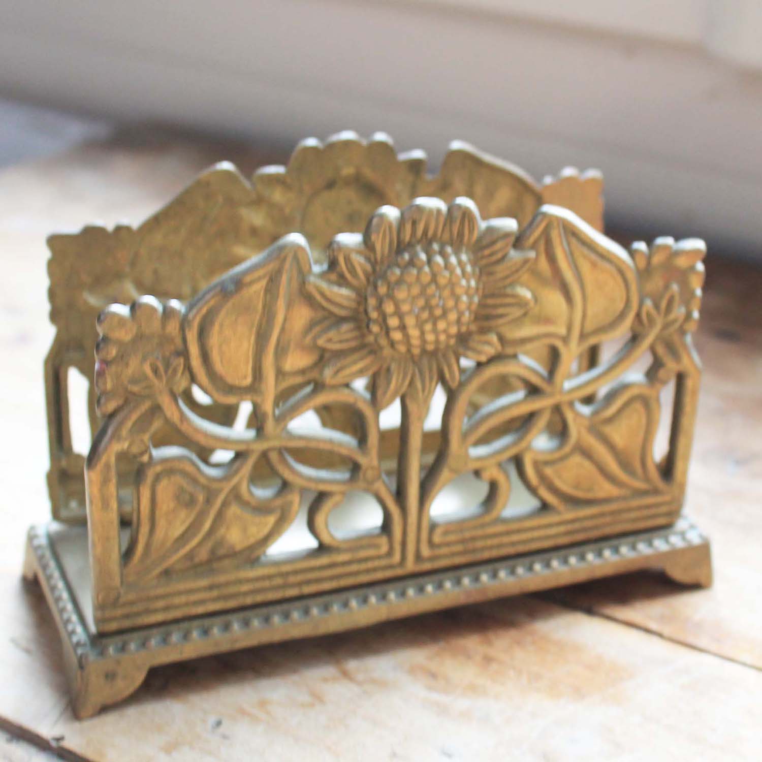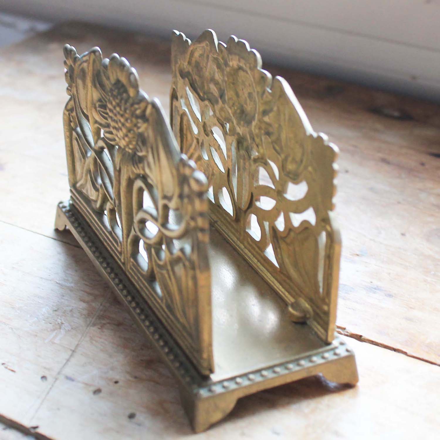 古い真鍮製の手紙ホルダー。古いものなので多少の傷、汚れがあります。