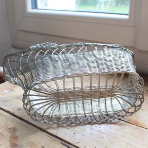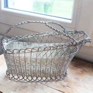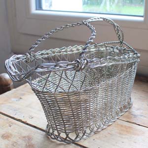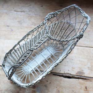 古いワイヤー製のワインホルダー。ワインをテーブルに出すときに使います。ワインの澱がグラスに入らないようにするためのホルダーになります。古いものなので多少の汚れがあります。