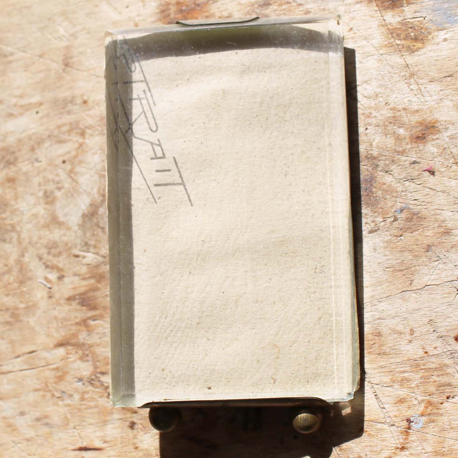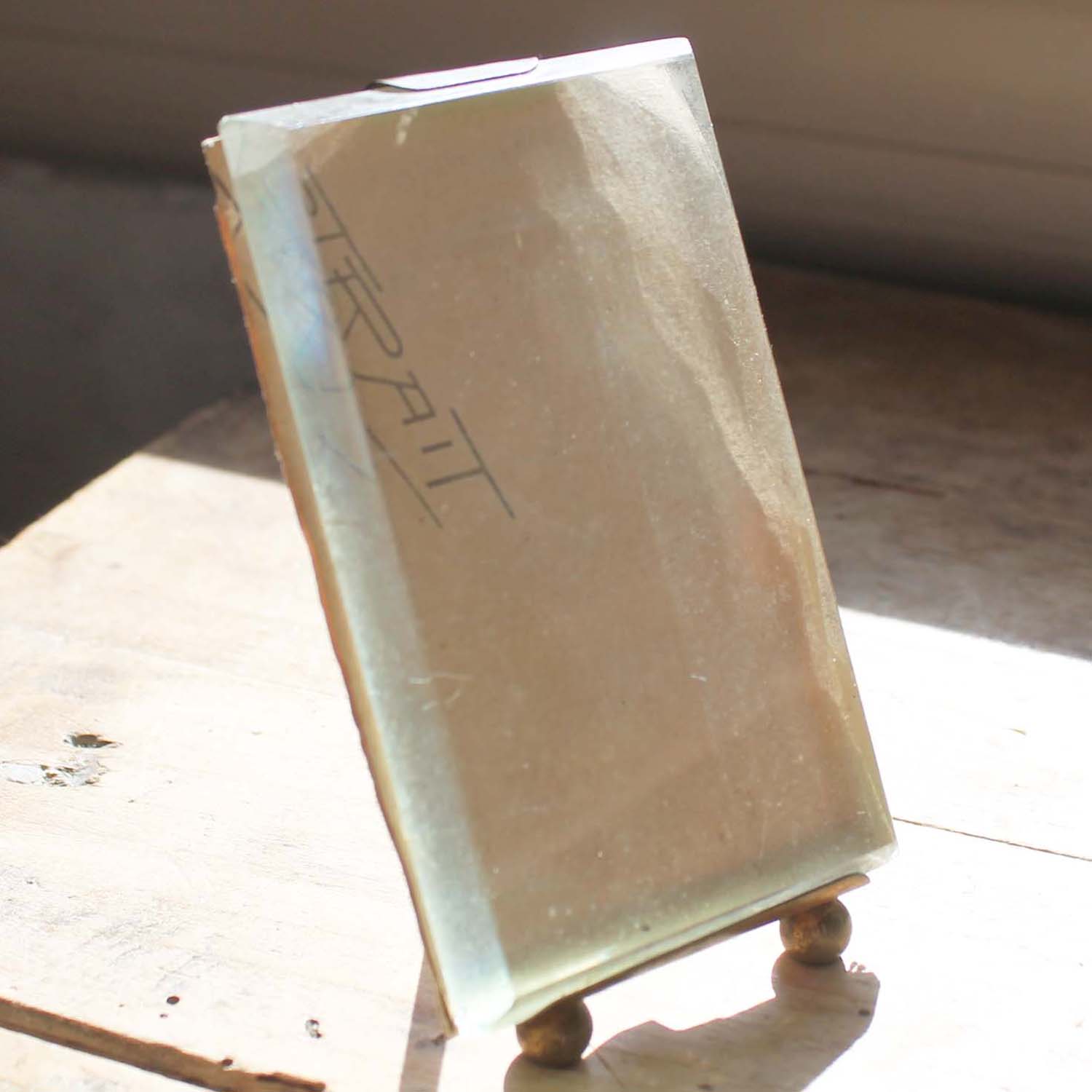 100年ぐらい前の古いガラスフレーム。トップの飾りが取れています。古いものなのでガラスの淵に多少欠けがあります。