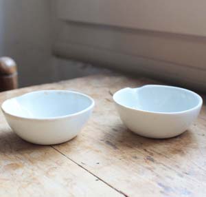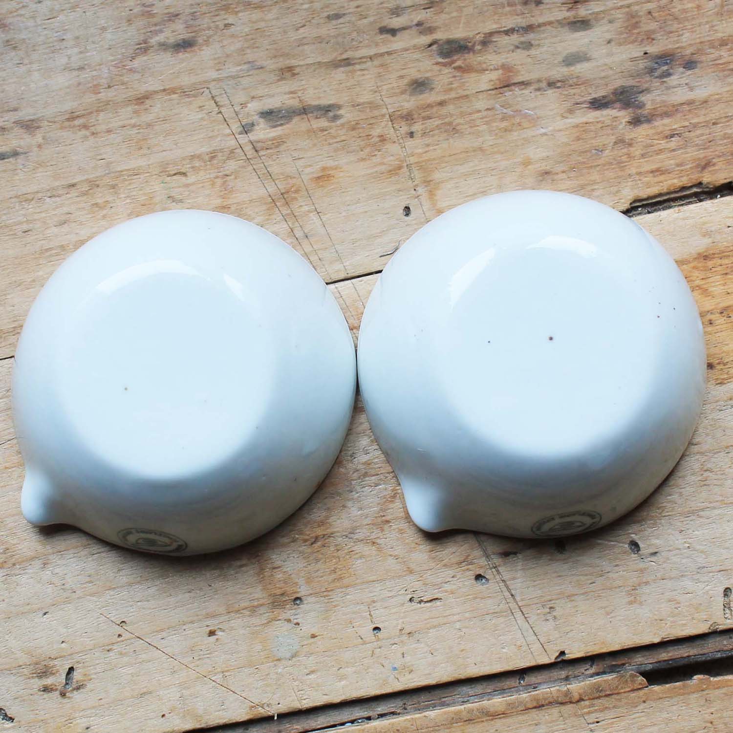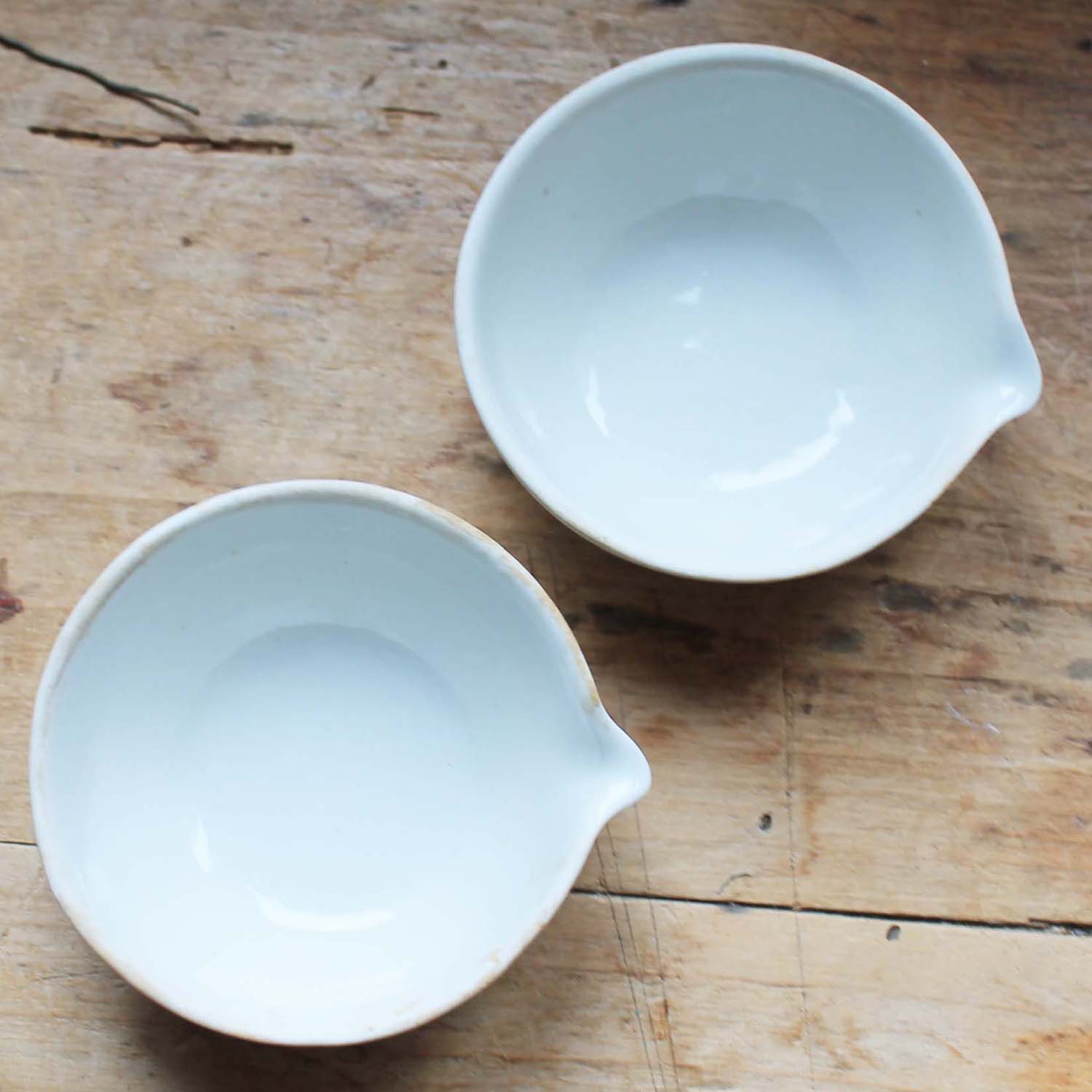 小さなポーセリン製のボウル 2個セット。 薬局で使われていたものです。 古いものなので多少の傷、汚れがありますが、欠け、ラインはありません。