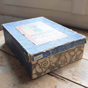100年以上前の古い糸が入っていた紙箱。 本にも載っているとても有名なものになります。古いものなので、色の変色、傷、汚れ、紙の切れがあります。