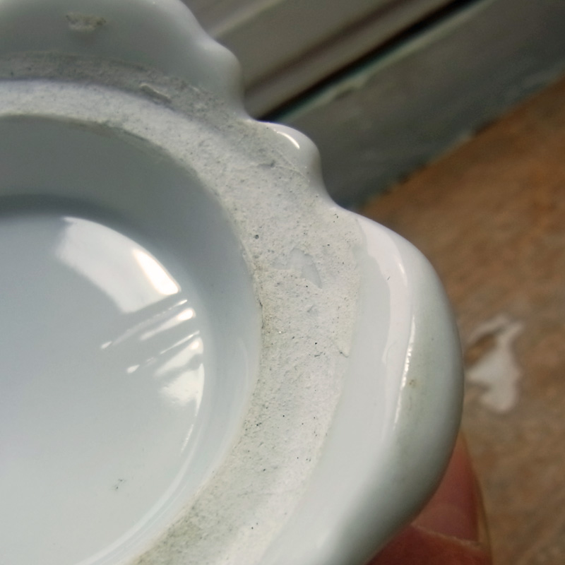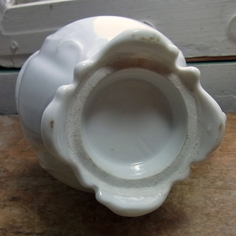 古いポーセリン製のミルクピッチャー。 古いものなので高台の裏に汚れがありますが、欠け、ラインはありません。 ラインのように見えるところは作られた当時に入った難です。