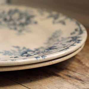 100年ぐらい前の古いパン皿2枚セット。 Choisy le Roi製の物です。 古いものなので貫入、シミ、傷がありますが、欠け、ラインはありません。 シミの状態が悪いので、格安のお値段を付けました。