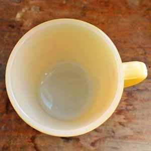 オランダのココアメーカーNutriciaのノベルティーマグ。 ファイヤーキングの1960〜67年の刻印が入っています。 多分ベルギーで配られたものだと思います。 古いものですが、デッドストック状態で、とてもきれいです。 薄い黄色と内側の白のコントラストがアメリカのファイヤーキングと違いシックだと思います。