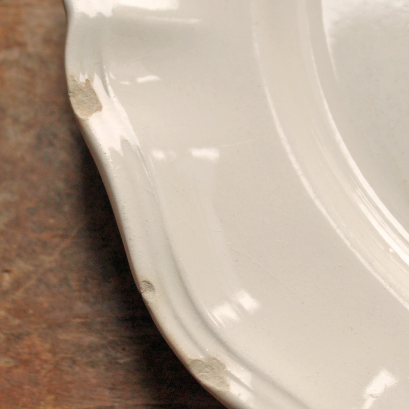 古いサルグミンヌ製のお皿、3枚セット。ふちに欠け、シミなどがありますので、格安のお値段にしました。