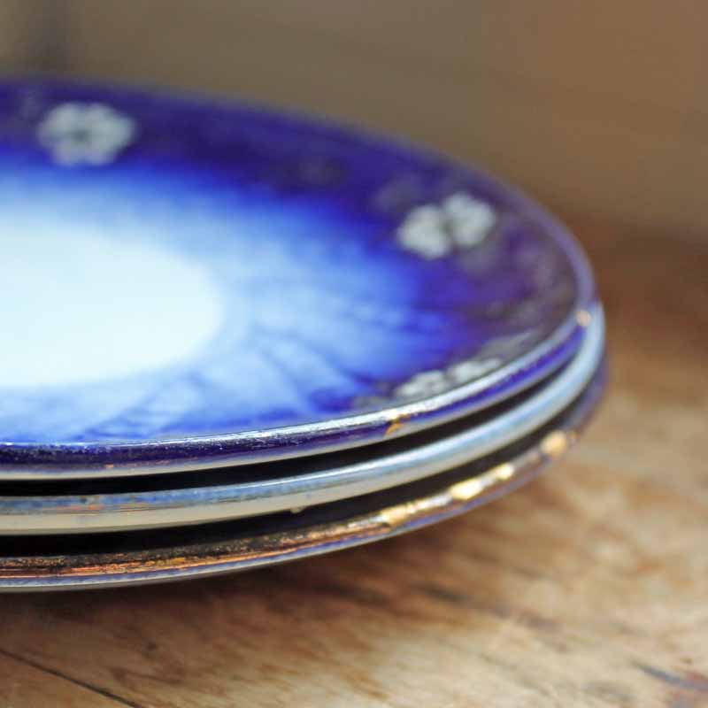100年ぐらい前の古いリュネビル製のソーサー。 エナメル技術を使った装飾がシックです。古いものなので多少の傷、汚れがありますが、欠け、ラインはありません。