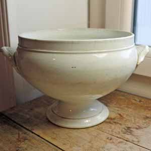100年ぐらい前のChoisy le roi製のスーピエール。ふたがありません。 古いものなので多少の傷、汚れ、貫入、ヘアライン等がありますが、大きな欠けはありません。単品で2sを超えますので発送は補償付のみになります。