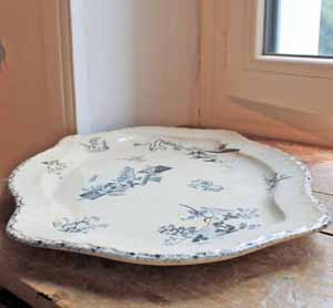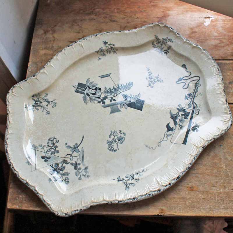 100年ぐらい前の古い大皿。Regenceシリーズの物です。19世紀は東洋美術がヨーロッパで大流行しました。こちらもその当時の流行に乗った東洋柄になります。古いものなので多少の傷、汚れ、貫入がありますが、欠け、ラインはありません。