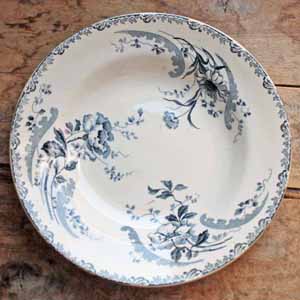 100年ぐらい前の古いスープ皿。 シックなTransfert柄です。古いものなので多少の傷、汚れ、貫入がありますが、欠け、ラインはありません。