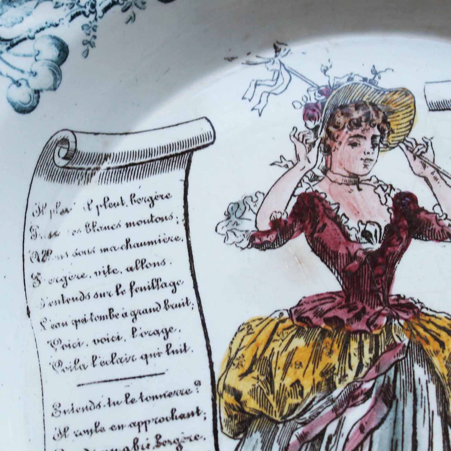 【商品番号】K190243 【 商品名】19世紀後期 Choisy le rois(HB&CIE)製 大深皿 Il Pleut bergere