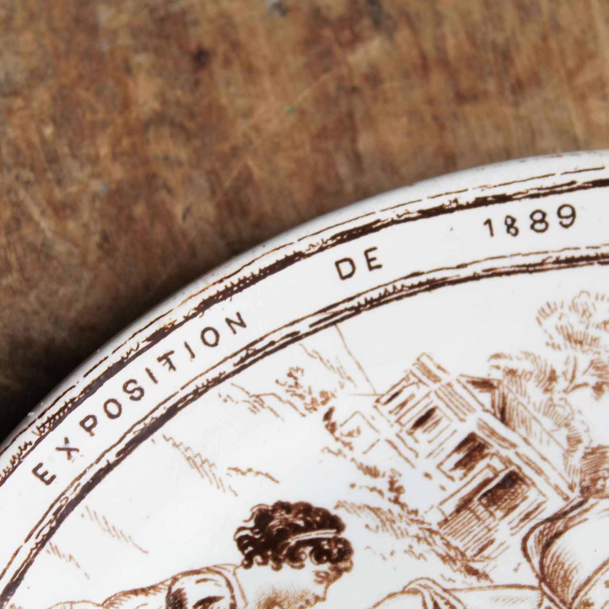 1889年のエキスポの文字が入っている古いデザート皿。1889年のエキスポ用に作られたものだと思います。古いものなので傷、汚れがありますが、欠け、ラインはありません。