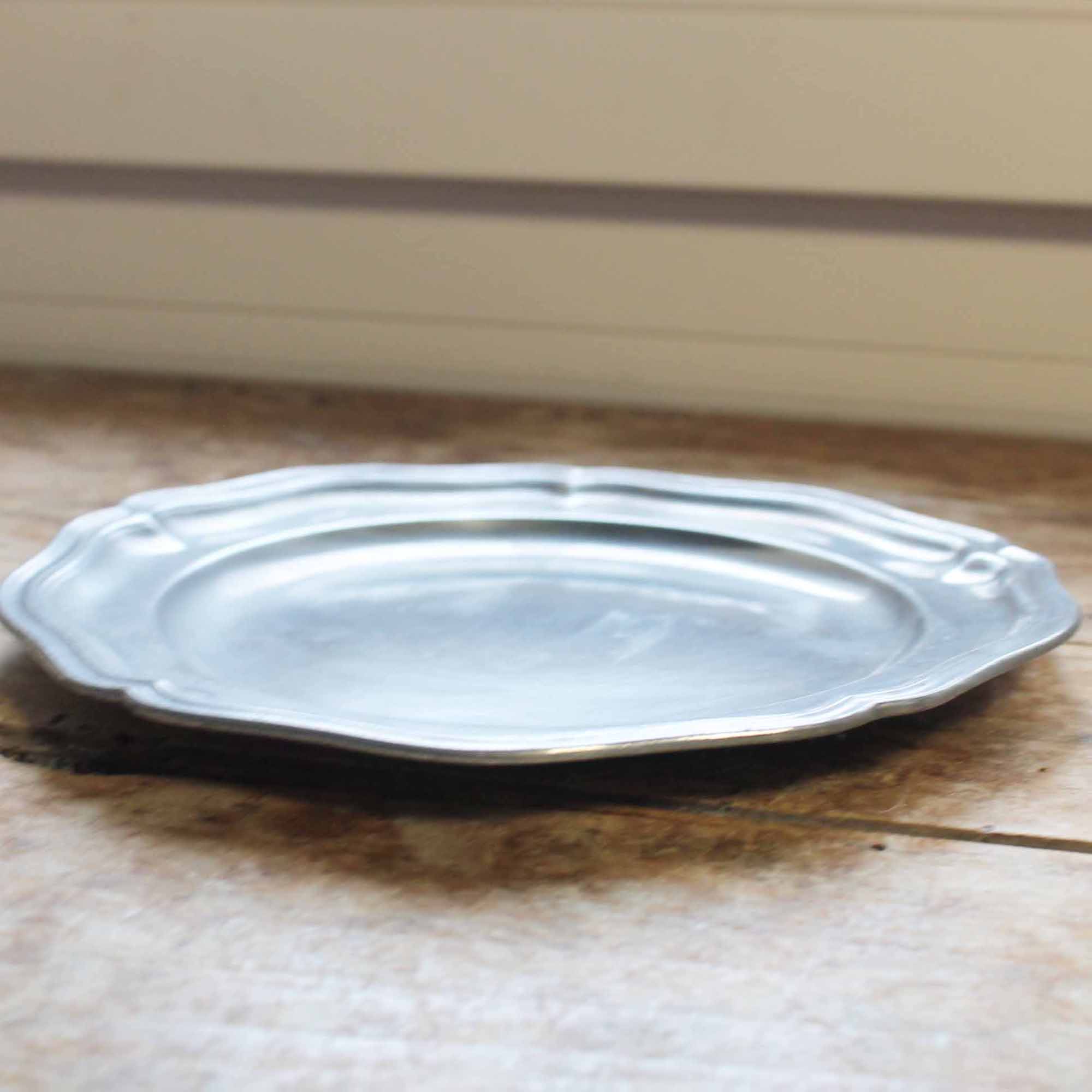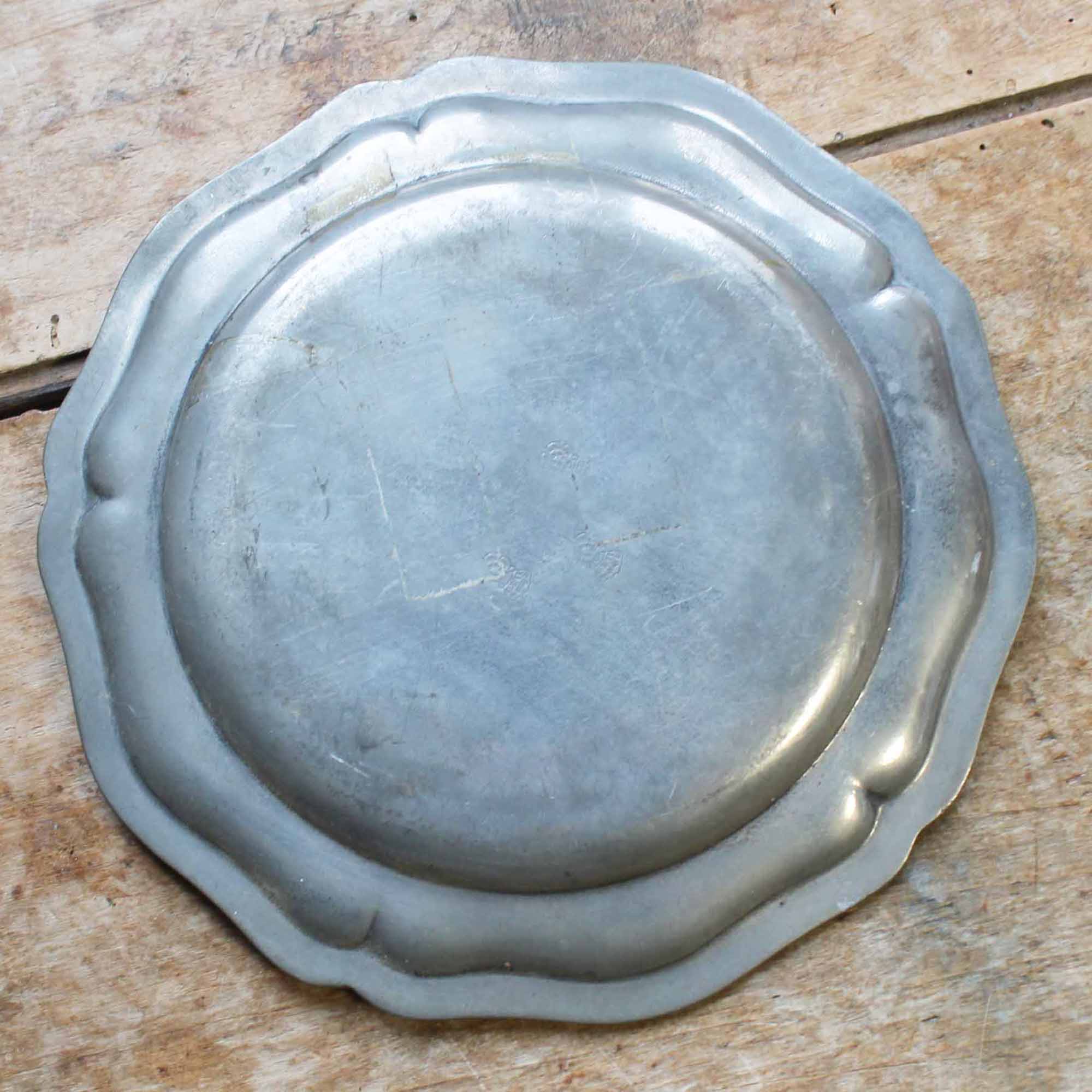 古いピューター製のお皿。古いものなので傷、汚れがあります。