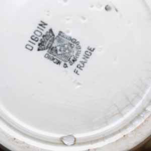 100年ぐらい前の古い陶器製のpitcher。 ディゴアン製です。古いものなので傷、汚れ、欠けがあります。状態を鑑みて、格安のお値段を付けました。