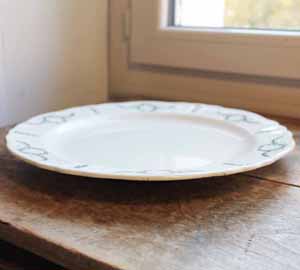 100年ぐらい前の古い大皿。 ガーランドのモチーフがシックです。古いものなので多少の傷、汚れ、貫入、シミ、裏側に小さな欠けがあります。