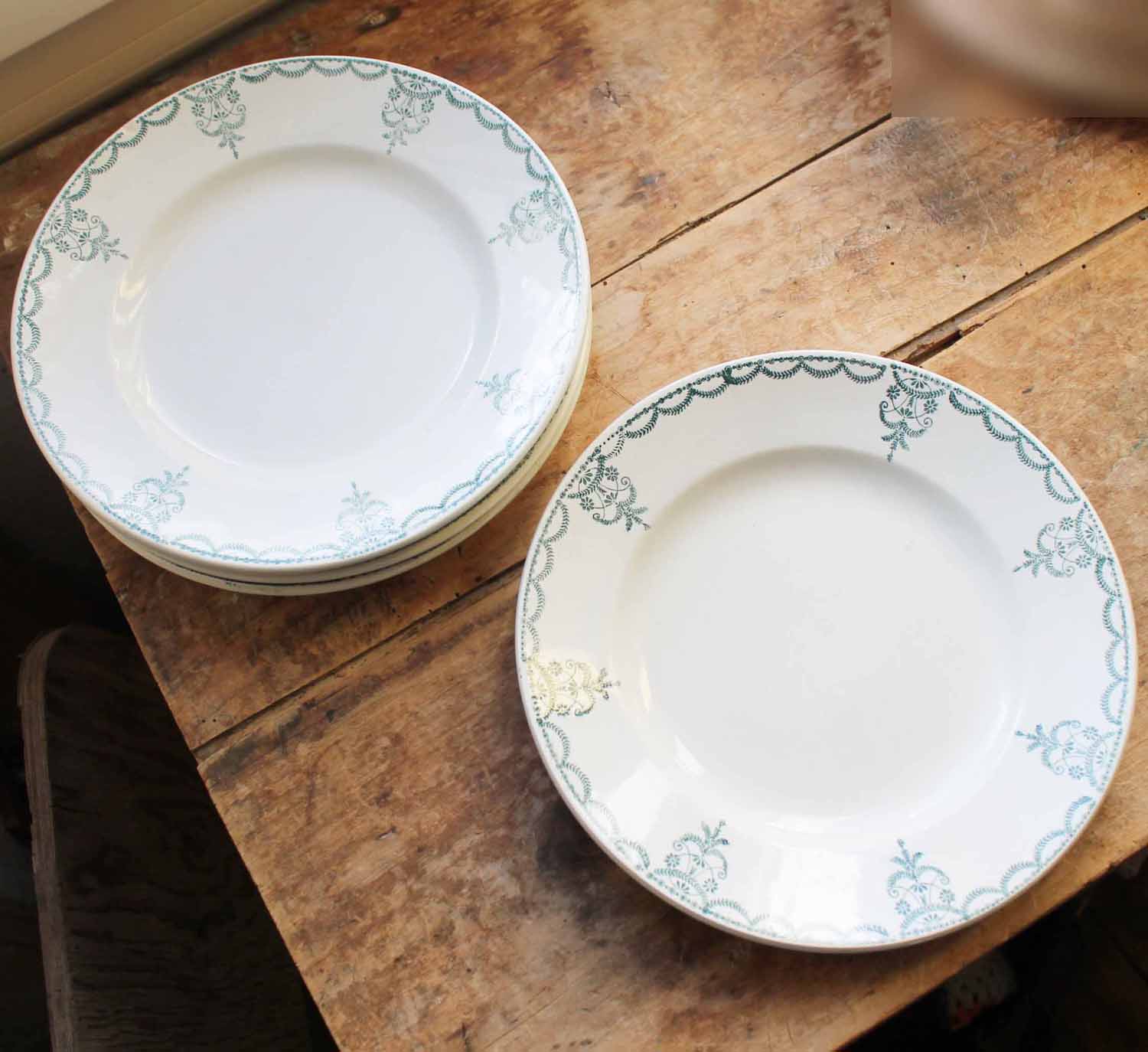 古いガーランド柄がシックなプレート。古いものなので傷、汚れ、貫入がありますが、欠け、ラインはありません。