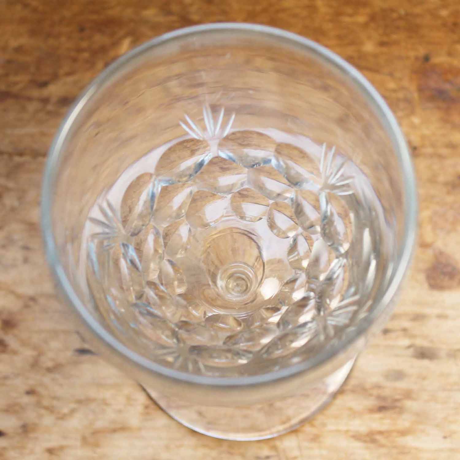 100年ぐらい前の古いワイングラス。 吹きガラス製です。ビストロやカフェバーで使われていたもので18clと文字が入っています。古いものなので、作られた当時に入った気泡やガラスのよれがあります。