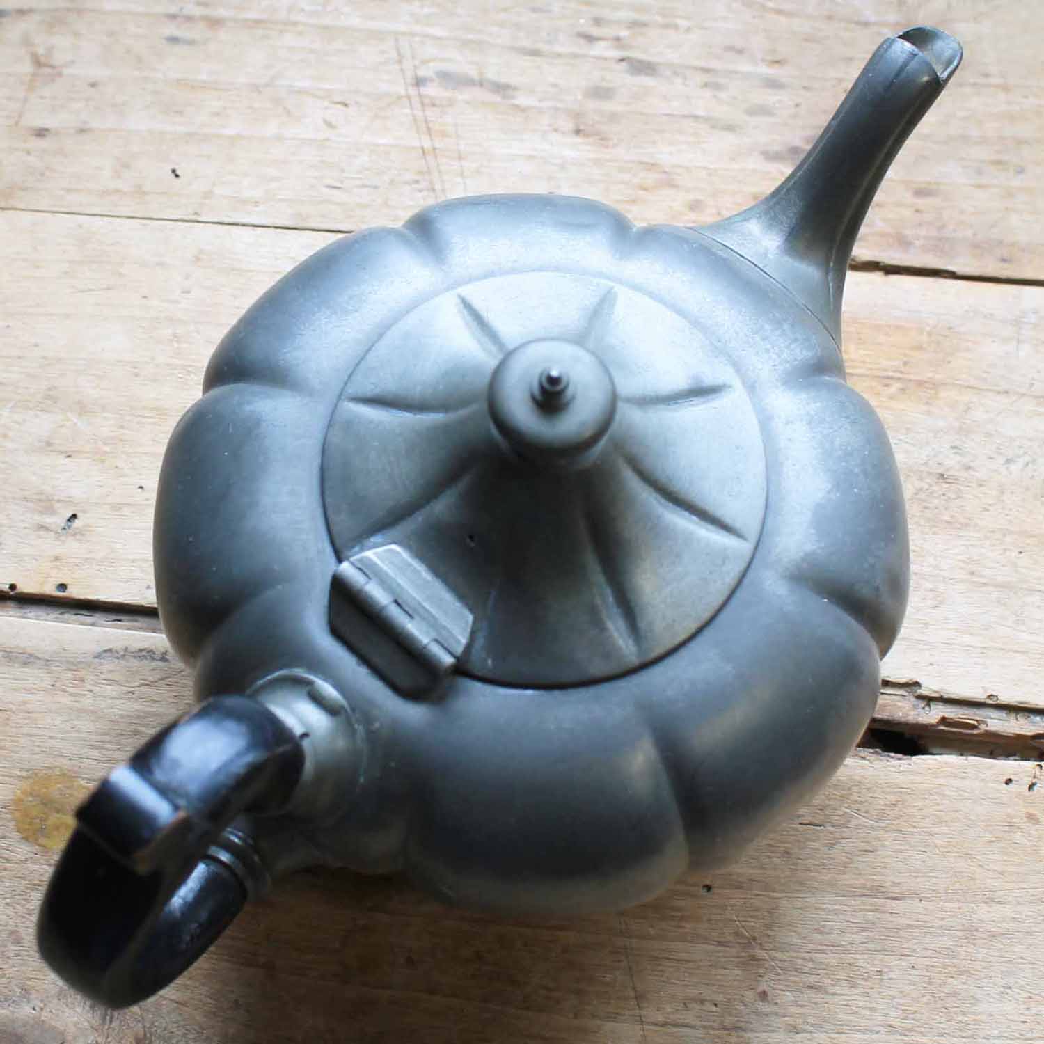 イギリス シェフィールドのピューター製のティーポット。古いものなので多少の傷、汚れ、でこぼこがあります。