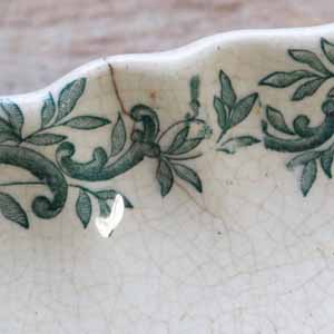 100年ぐらい前の古いラヴィエ。Longchamp製です。古いものなので多少の傷、汚れ、貫入、シミ、淵にライン、小さな欠けがあります。