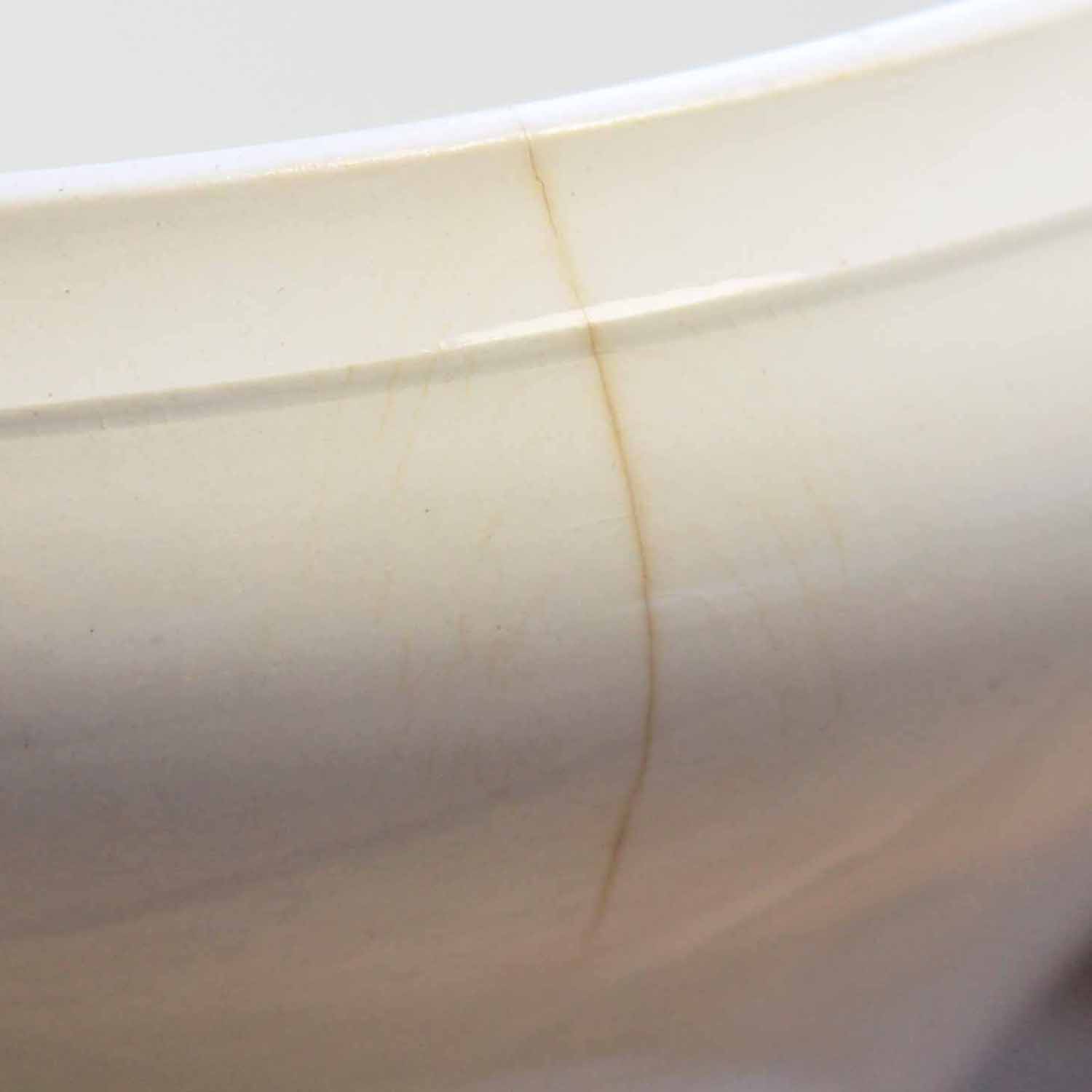 比較的小さめの陶器製のスーピエール、 サルグミンヌ製です。古いものなので大きなラインが入っていますが、欠けはありません。
