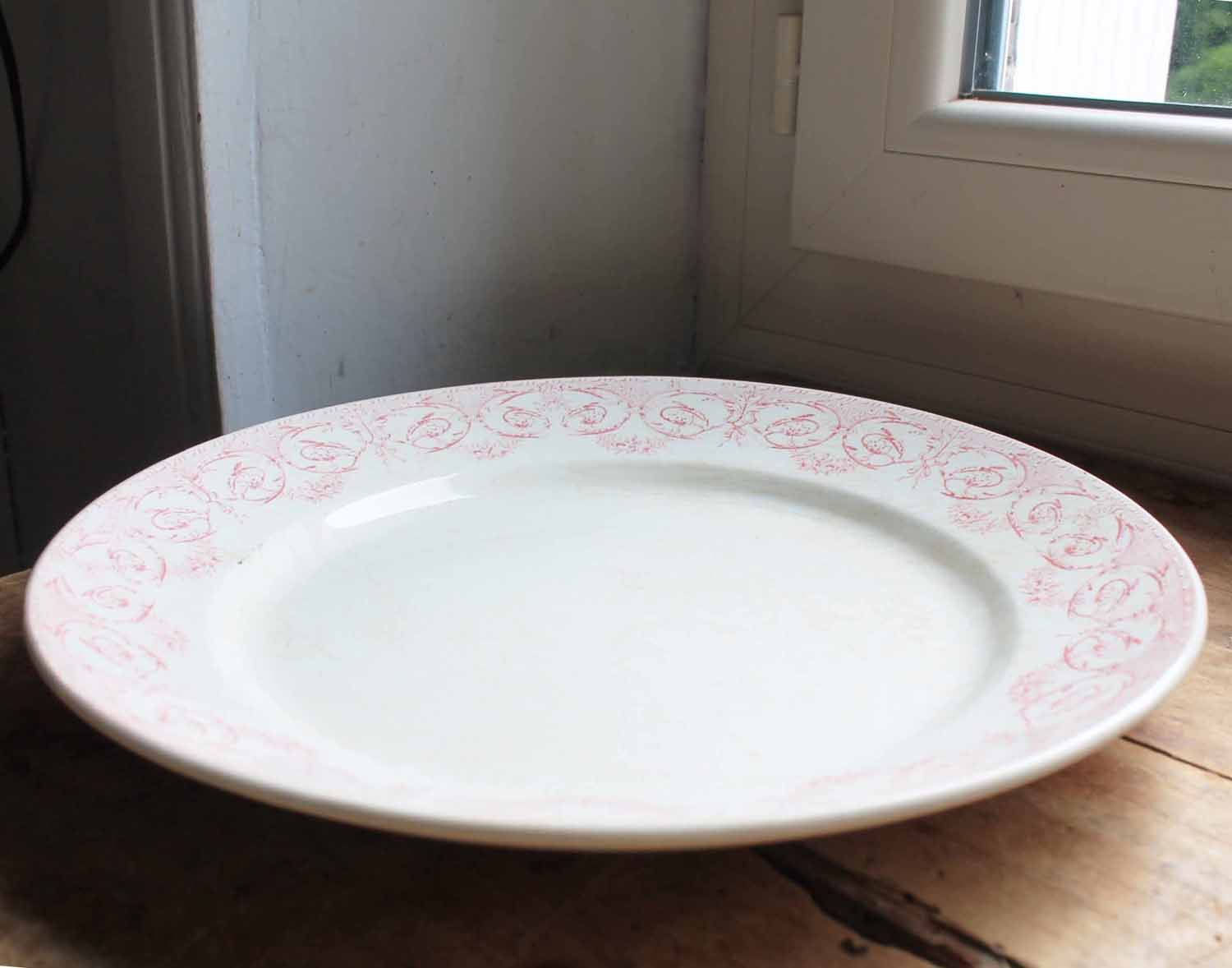 100年以上前の古い大皿。クレイユ&モントロー製です。古いものなので多少の傷、汚れ、貫入、シミがあります。