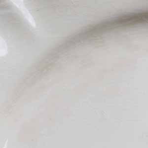 古いサルグミンヌ製のデザート皿。花形リムです。古いものなので多少傷、シミ、汚れ、淵に釉薬の剥がれがありますが、欠け、ラインはありません。