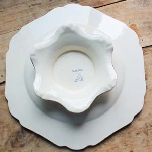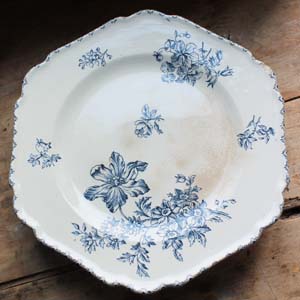 【商品番号】K250193 【 商品名】19世紀後期~20世紀初期 陶器製 高台付プレート 6角形