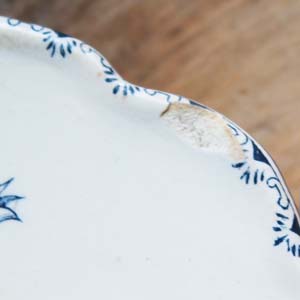 100年ぐらい前の古い高台付のプレート。古いものなので傷、汚れ、貫入、淵に欠けがあります。